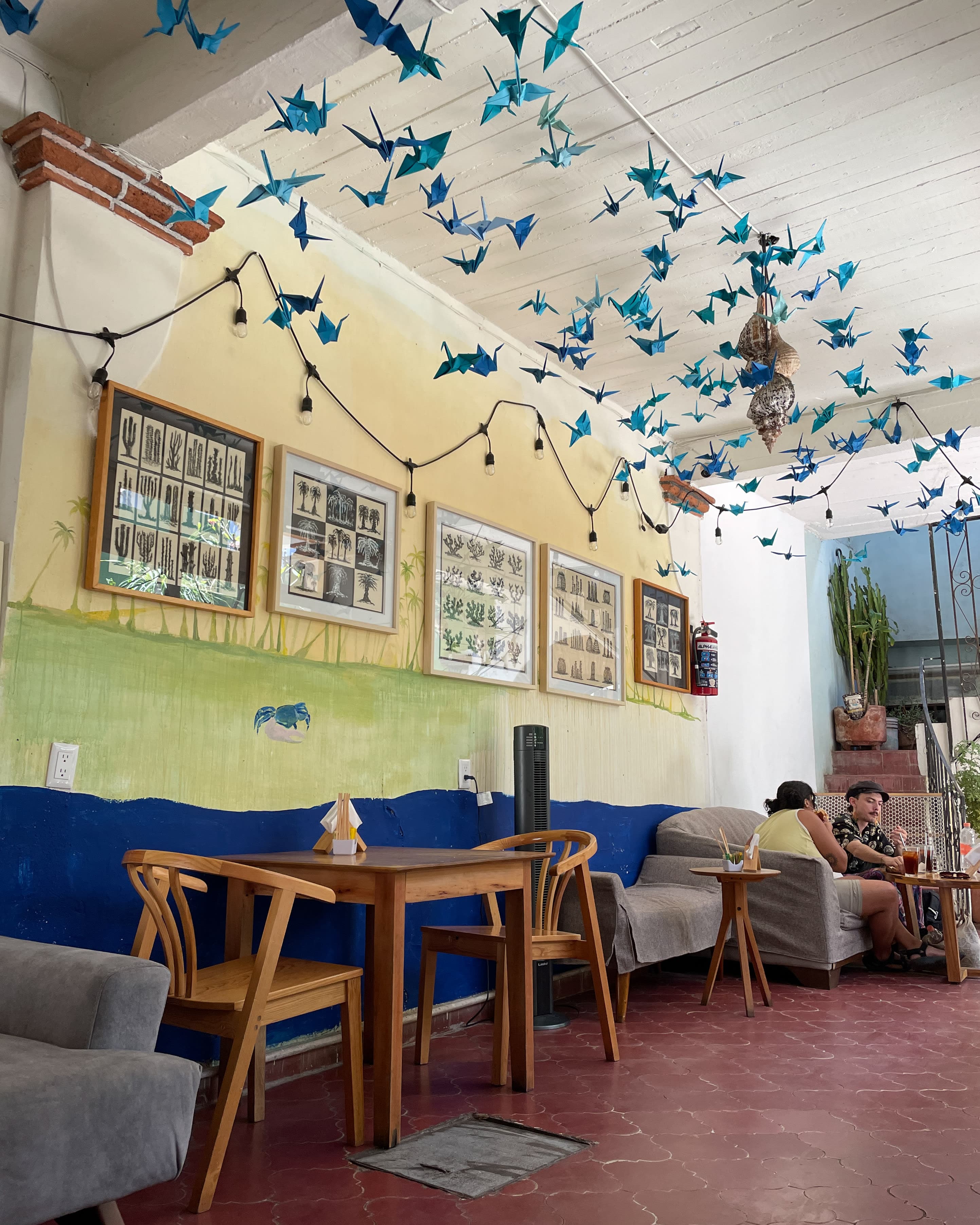Oaxaca en una Taza: Step back in time at Oaxaca en una Taza. This charming cafe, with its classic atmosphere, is located directly across from the Jardín Etnobotánico de Oaxaca. There are multiple locations in the city, but this one was my favorite. The colorful paper cranes hanging from the ceiling dance gently when there’s a breeze, creating a tranquil ambiance. The indoor/outdoor patio in the back is the perfect place to relax and savor a cup of coffee while enjoying the company of friends and family.