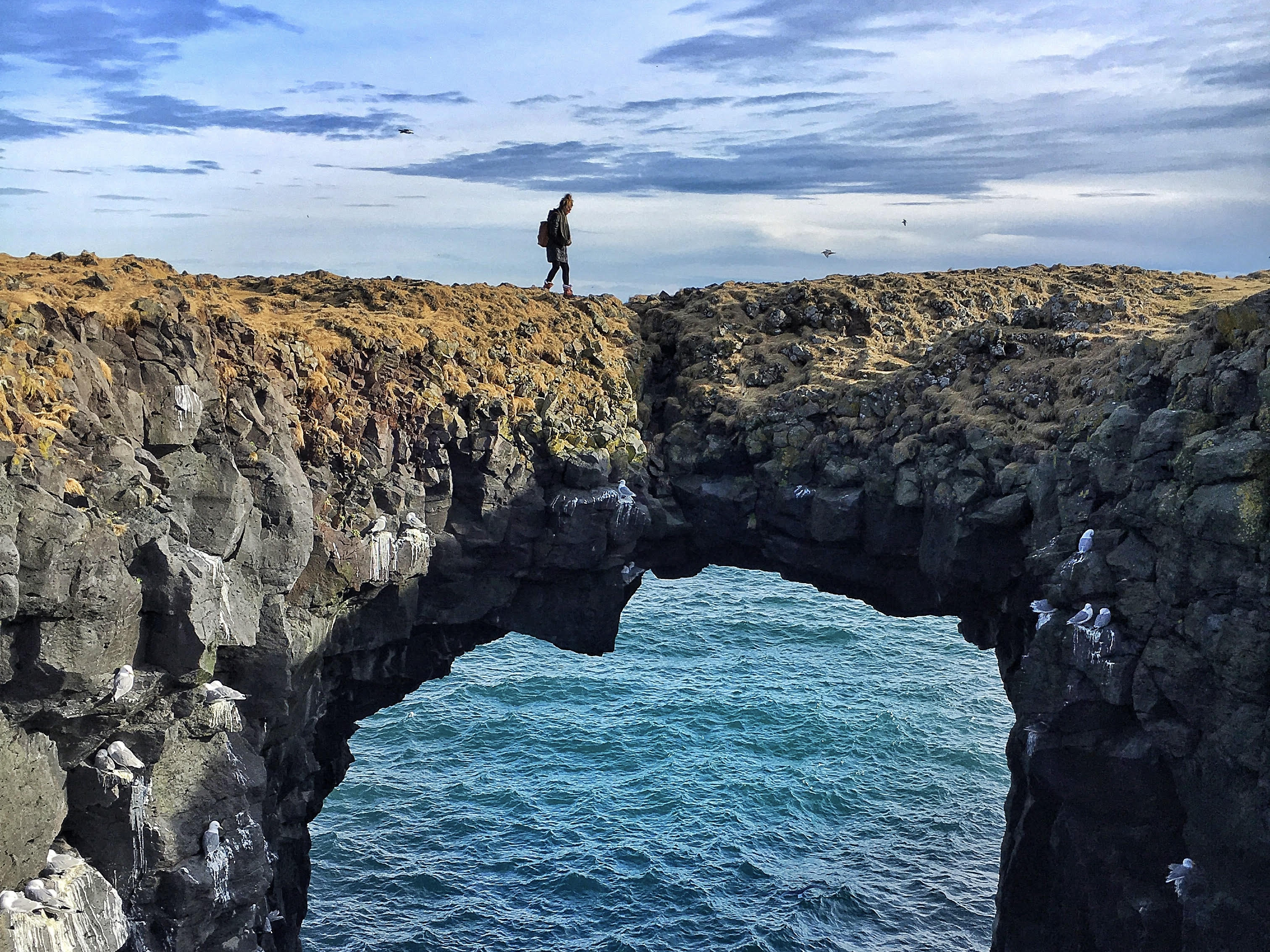 Crossing over the natural rock formation in Iceland