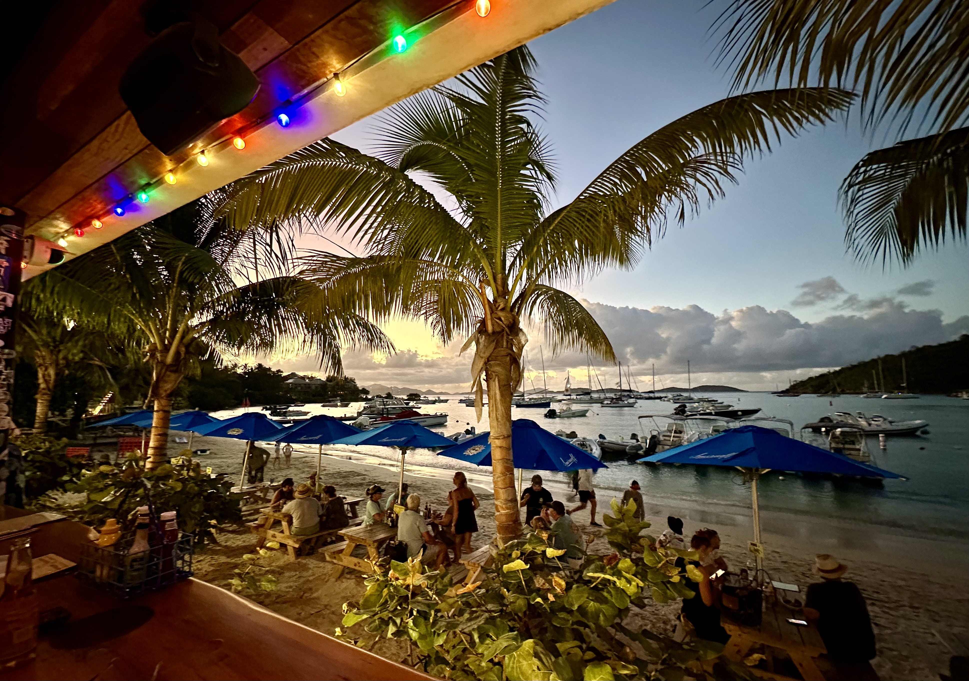 The Beach Bar in Cruz Bay is a casual spot for sunset views and live music.
