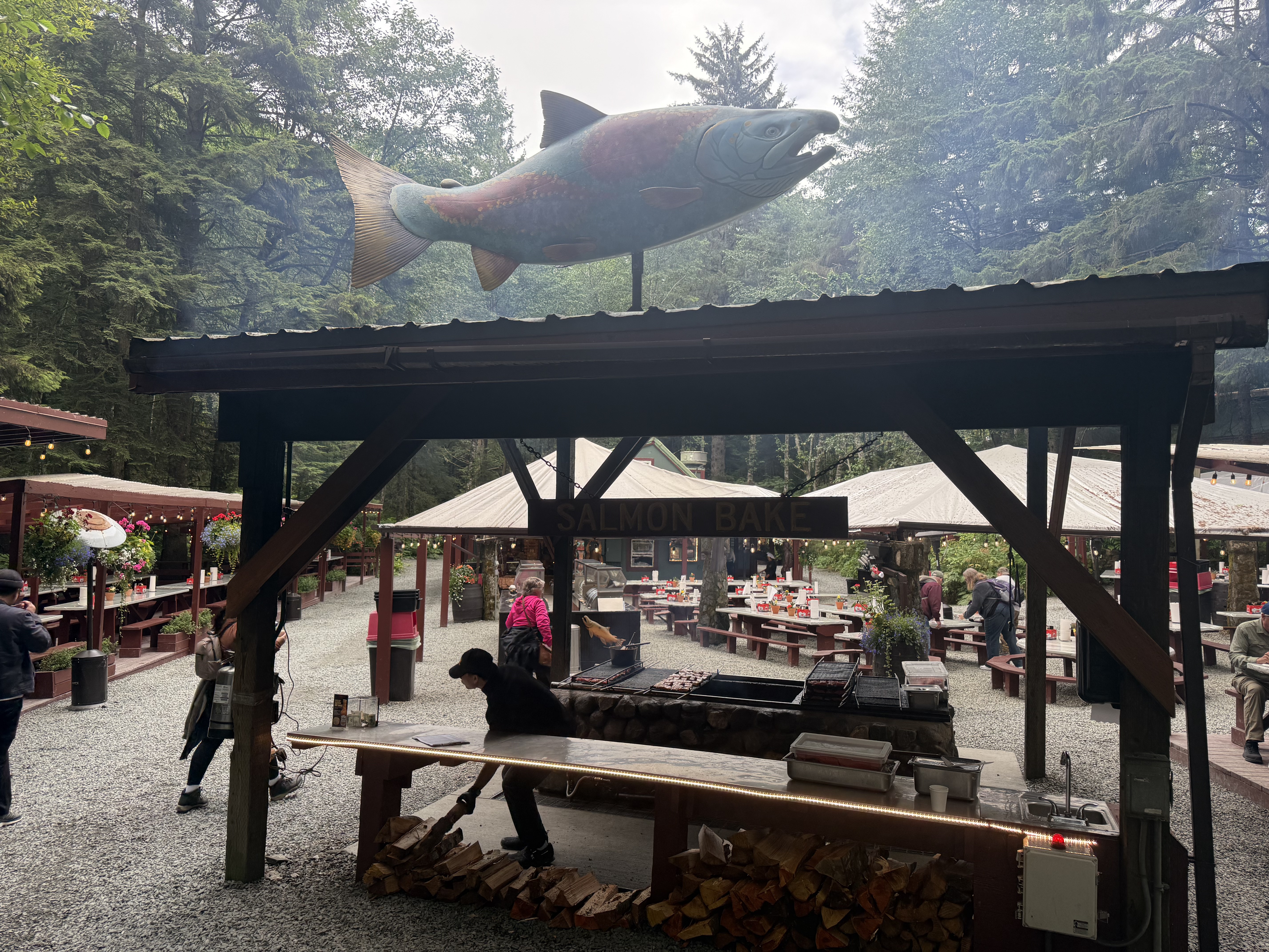 A classic Juneau salmon bake is one of my favorite ways to experience Alaska’s local food scene. Enjoying freshly grilled salmon, often cooked over an open fire and paired with beautiful outdoor settings, makes it feel both delicious and uniquely Alaskan.