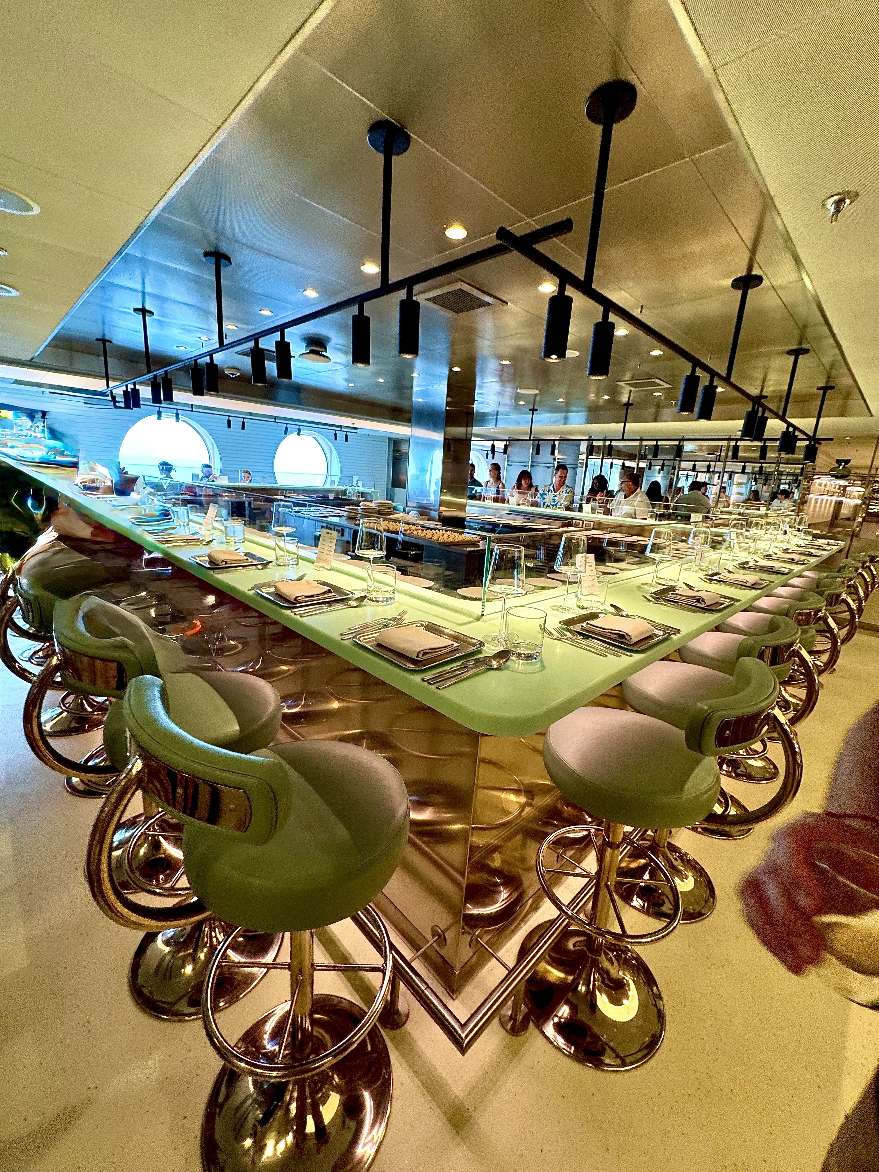 Korean BBQ at sea! It’s lively, interactive, and fun—especially with their surprise drinking games. I loved the grilled meats and group energy.The Wake