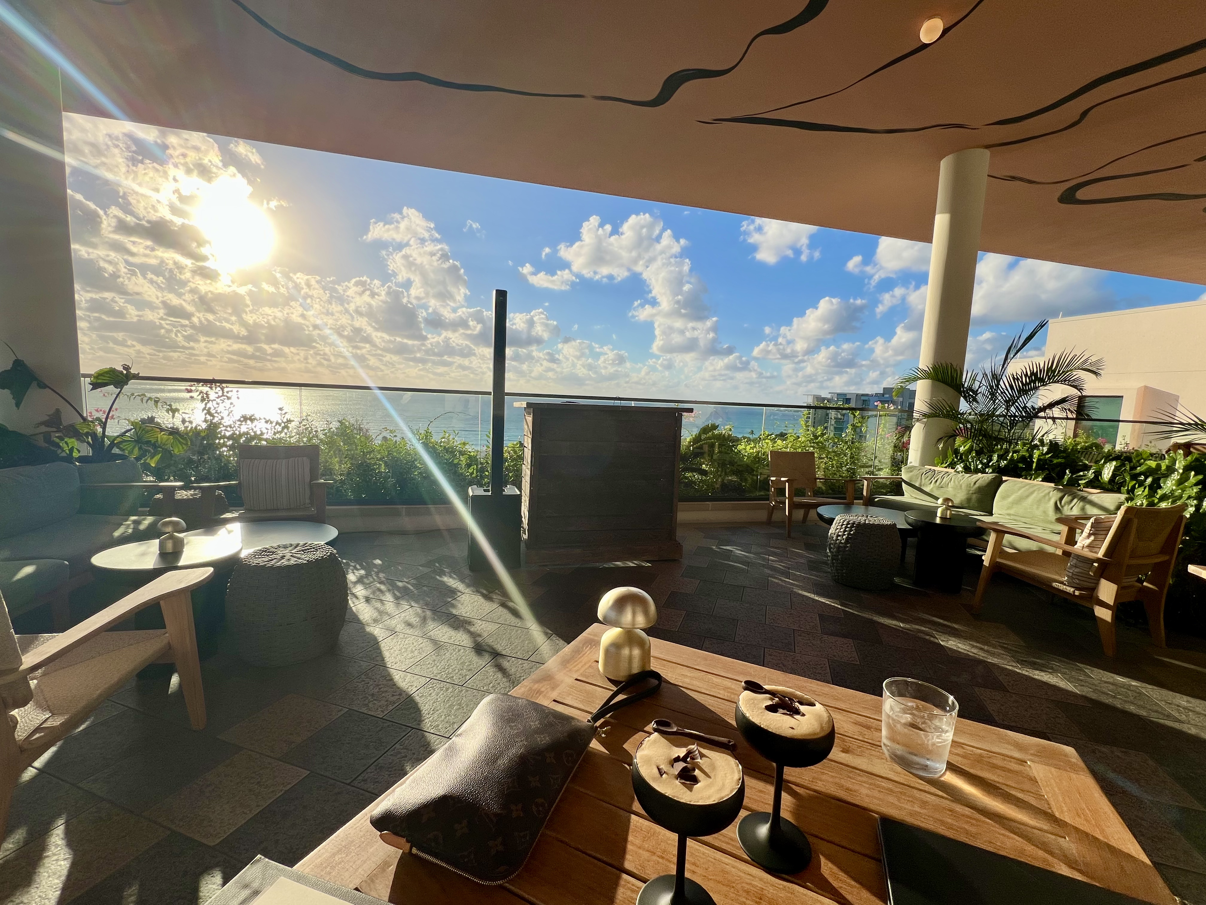 Pom Pom—chic rooftop lounge ideal for sunset drinks, light bites, and panoramic ocean views, best specialty espresso martinis, live DJ.