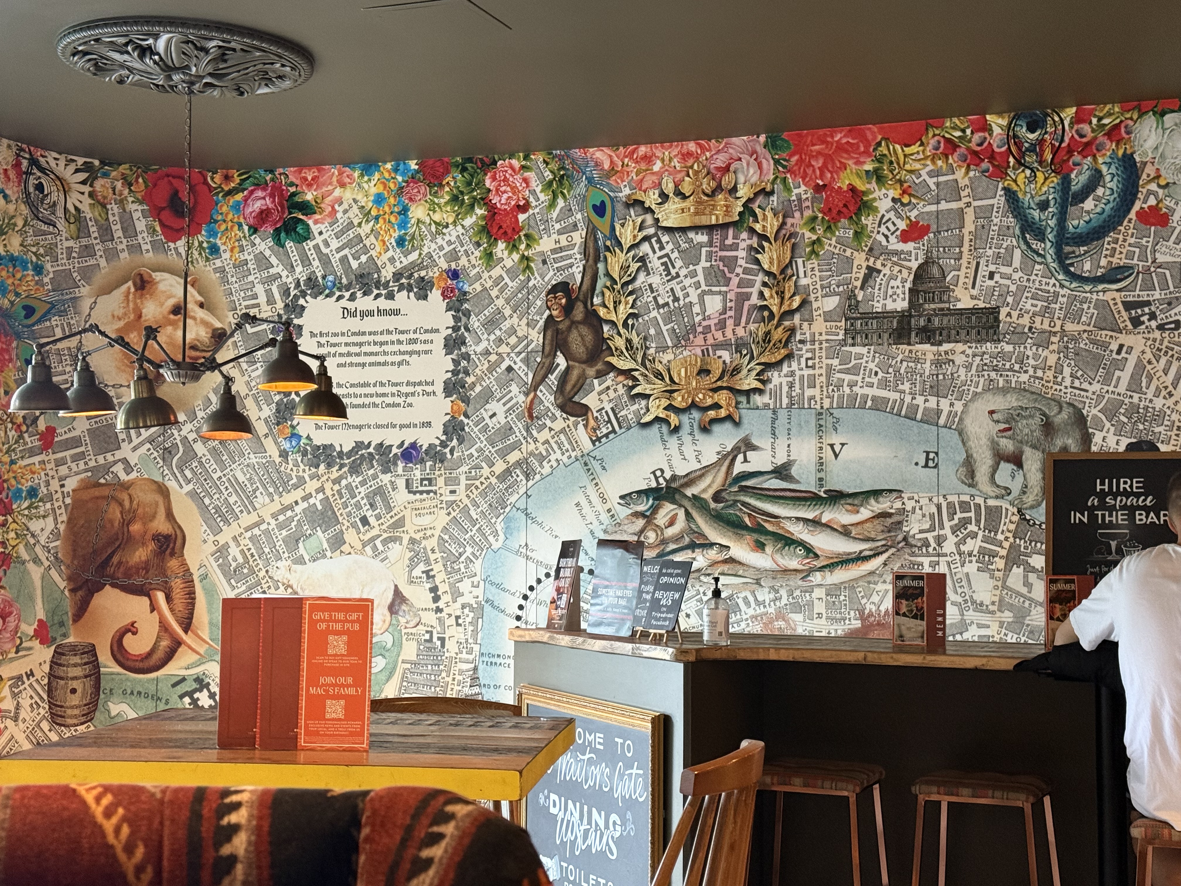 Traitors Gate: The perfect lunch spot after a tour at Tower of London. The interior and décor of this pub is exquisite and a nod to the old Royal Menagerie’s of the Tower. Food and drinks were both delish.