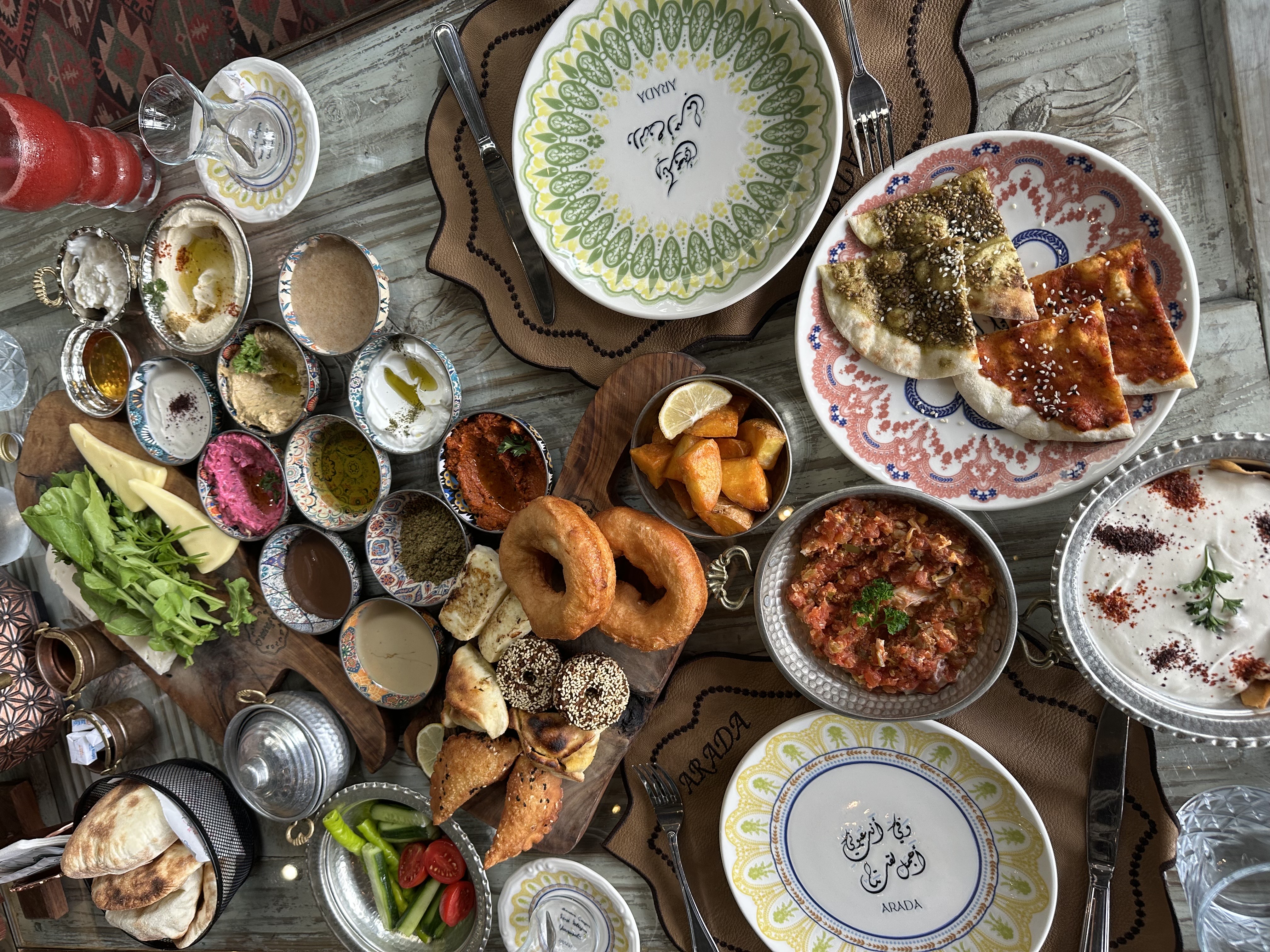 Arada Blue City: This is located on the Asian side of Istanbul. They serve Turkish breakfast, but Lebanese style. Everything was absolutely delicious and they serve enough food for at least four people (it was just my husband and I). Expect to try at least 10 different types of breads, dips, pastries, and salads! They also have an excellent selection of fresh-squeezed juices. I ordered their strawberry juice and it was so refreshing.