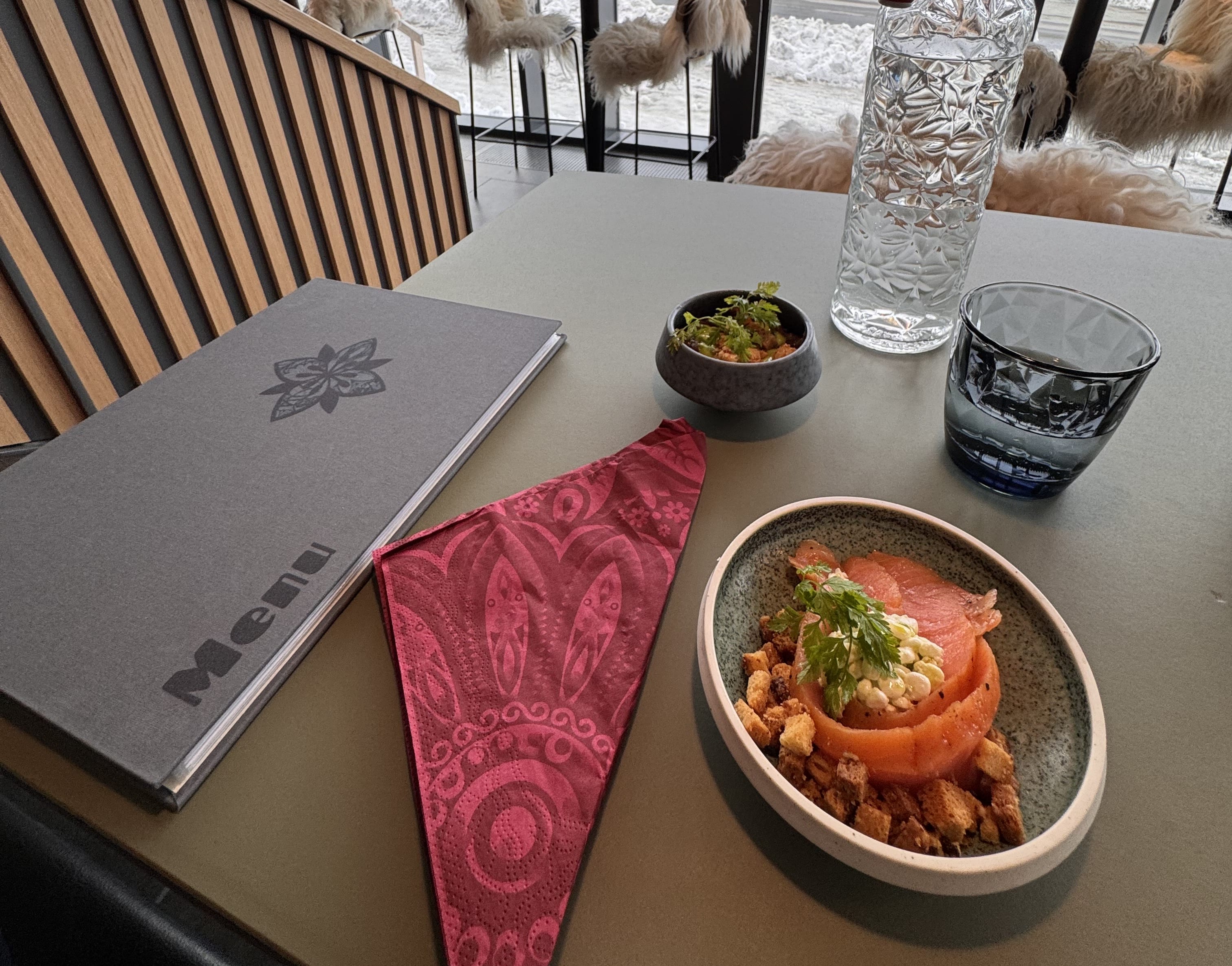 Sarfalik Restaurant: Fine dining located on the top floor of Hans Egede, featuring a brasserie based on the produce of the season, inspired by French and Italian cuisine.