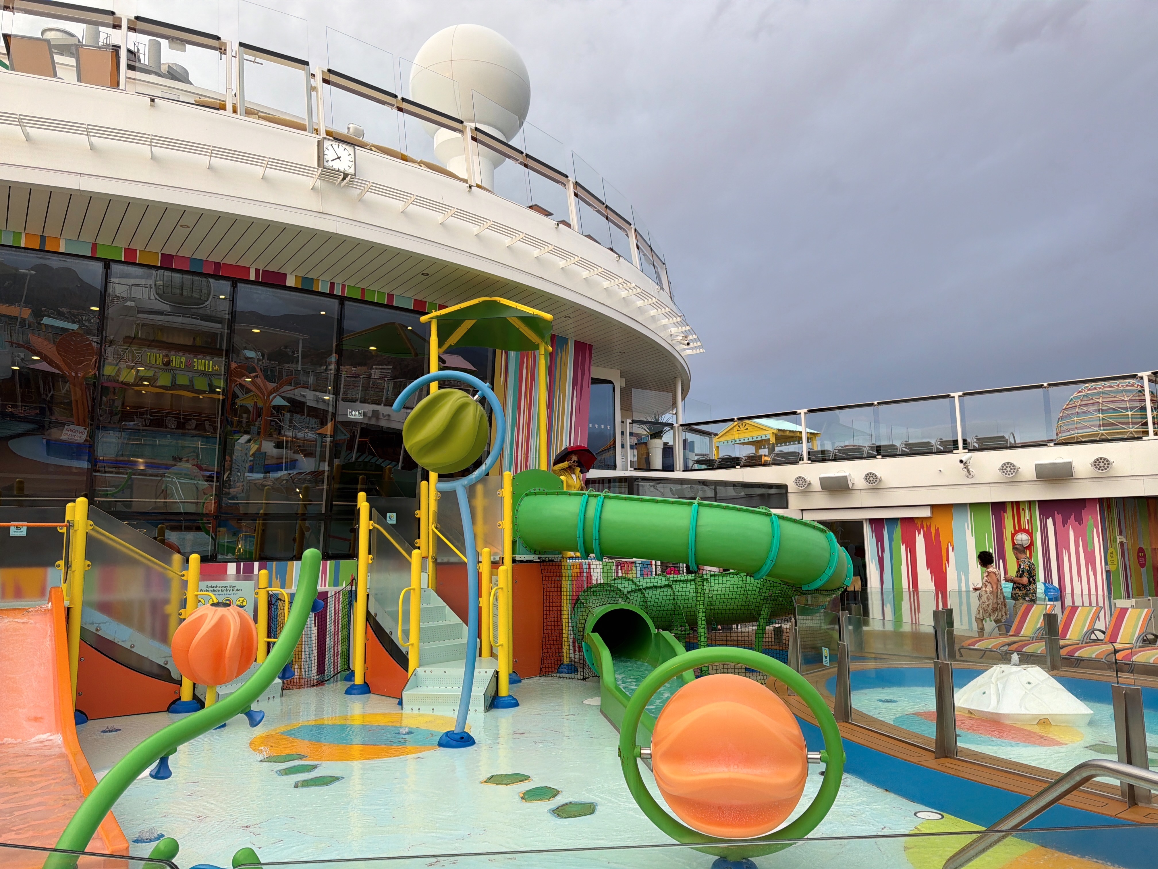 Morning: Pools, splash pad (diaper rules vary—check signage), and deck time.