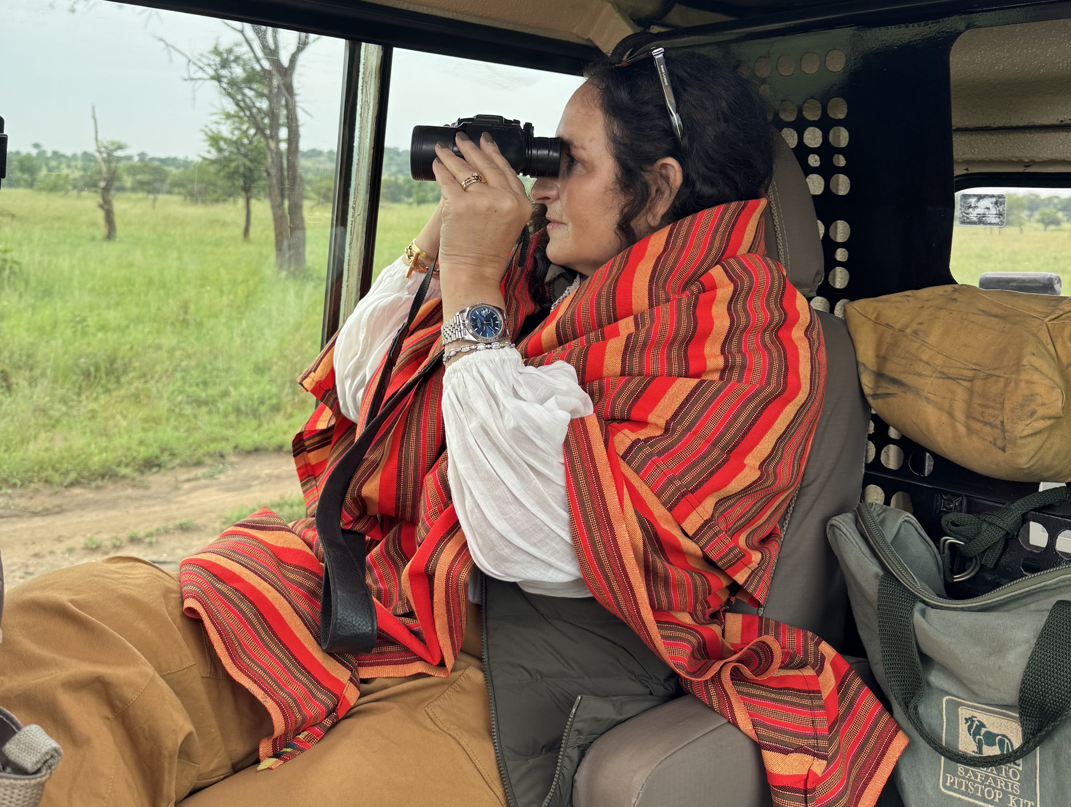 Serengeti state of mind: binoculars up, eyes peeled for zebras, giraffes, and lions. I could do this all day