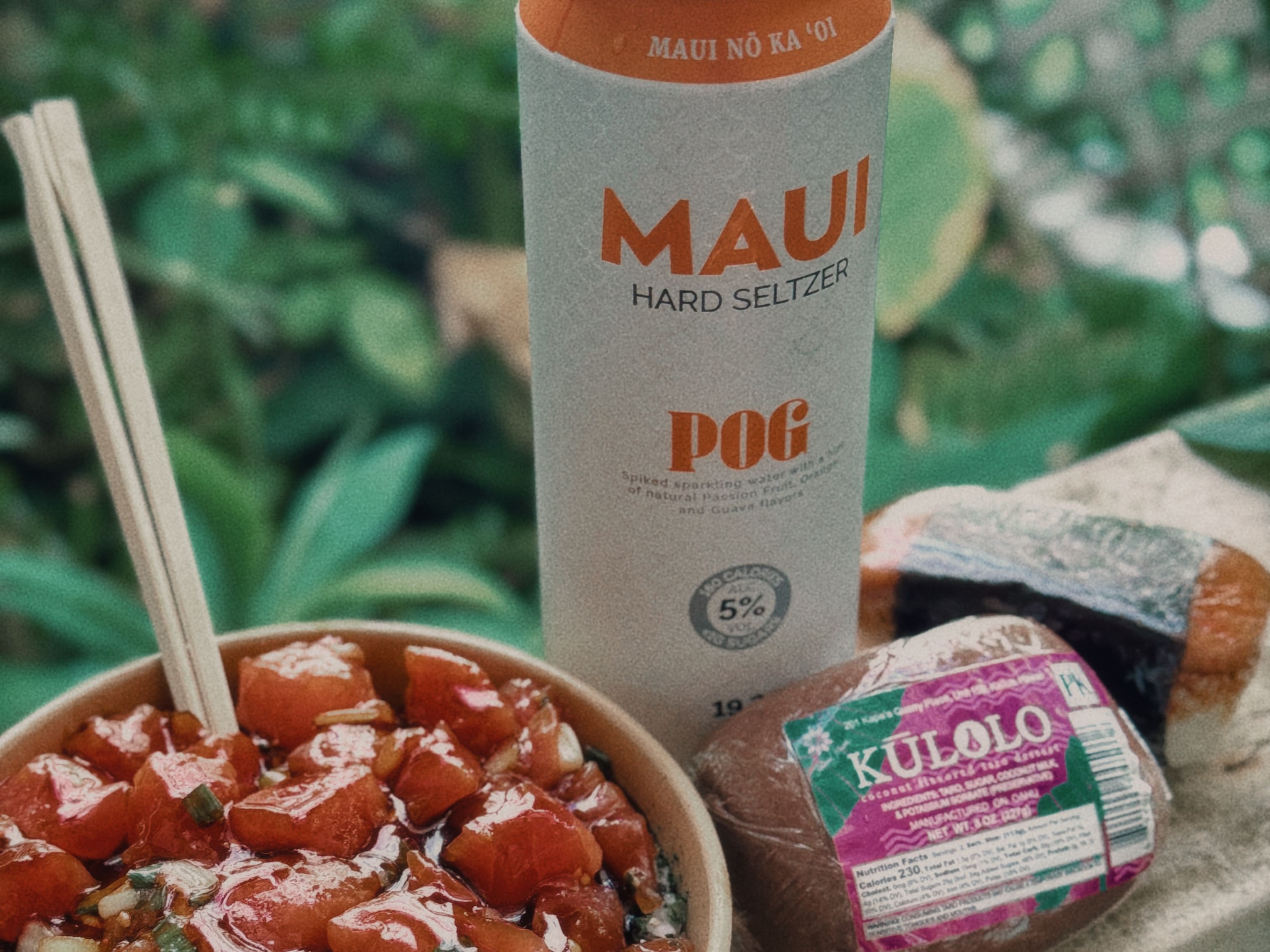 Fresh poke bowl & musubi from Pūpūkea Foodland