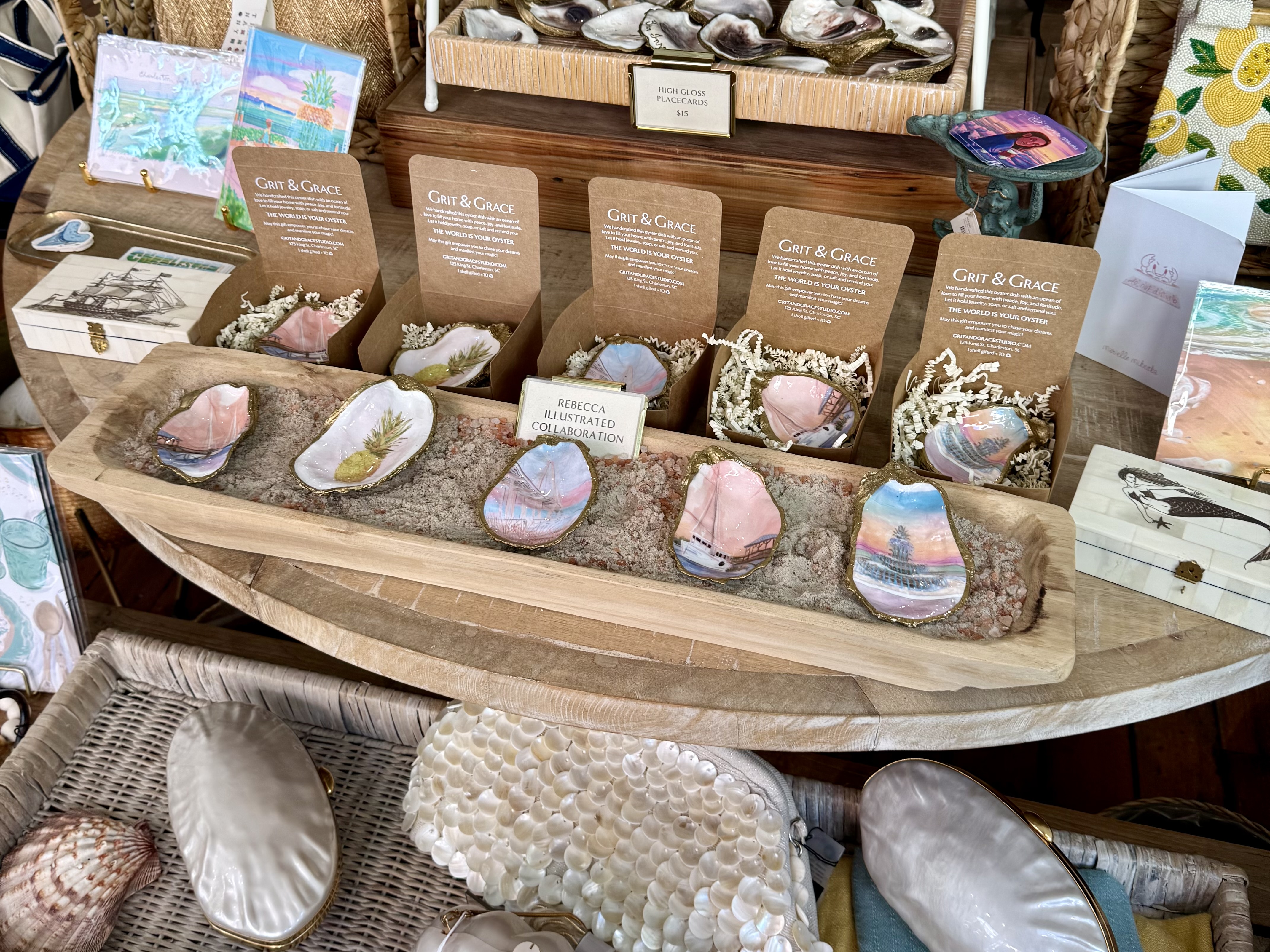 Shopping in Charleston is a highlight in itself, with most of the action centered along iconic King Street. You’ll find a mix of fun, recognizable brands like Hill House, Lake, Sézane, Faherty, Anthropologie, Tecovas, YETI, and Altar’d State alongside charming local boutiques. For unique gifts, stop into Mildred Newberry or Rebecca Illustrated, and browse jewelry, clothing, and thoughtful finds at Grit & Grace Studio. Home lovers shouldn’t miss EtuHome for beautiful décor and accessories.
