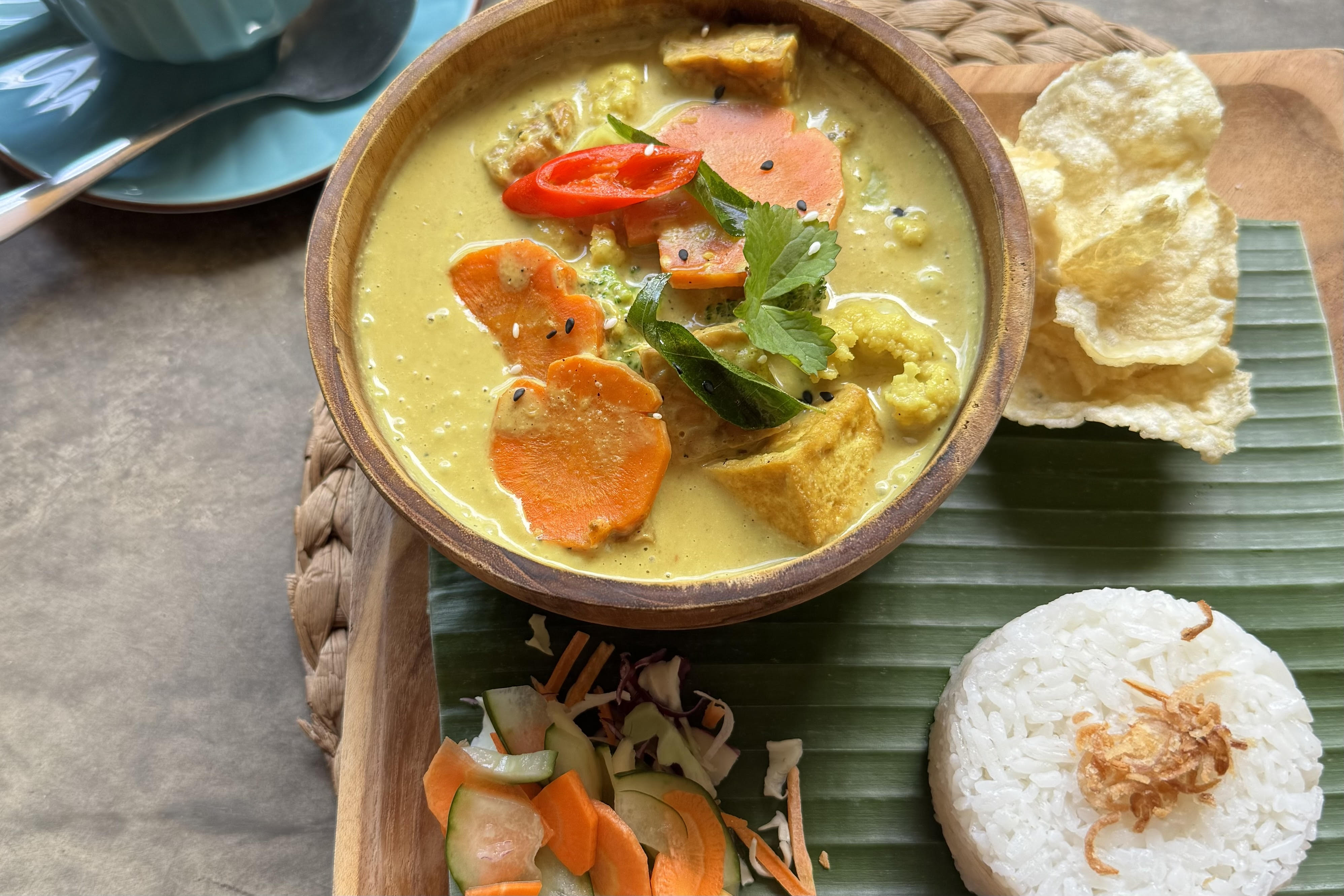 Soto is a broth-based soup served with noodles or rice, veggies, and typically chicken. It’s one of Indonesia’s most iconic comfort foods.