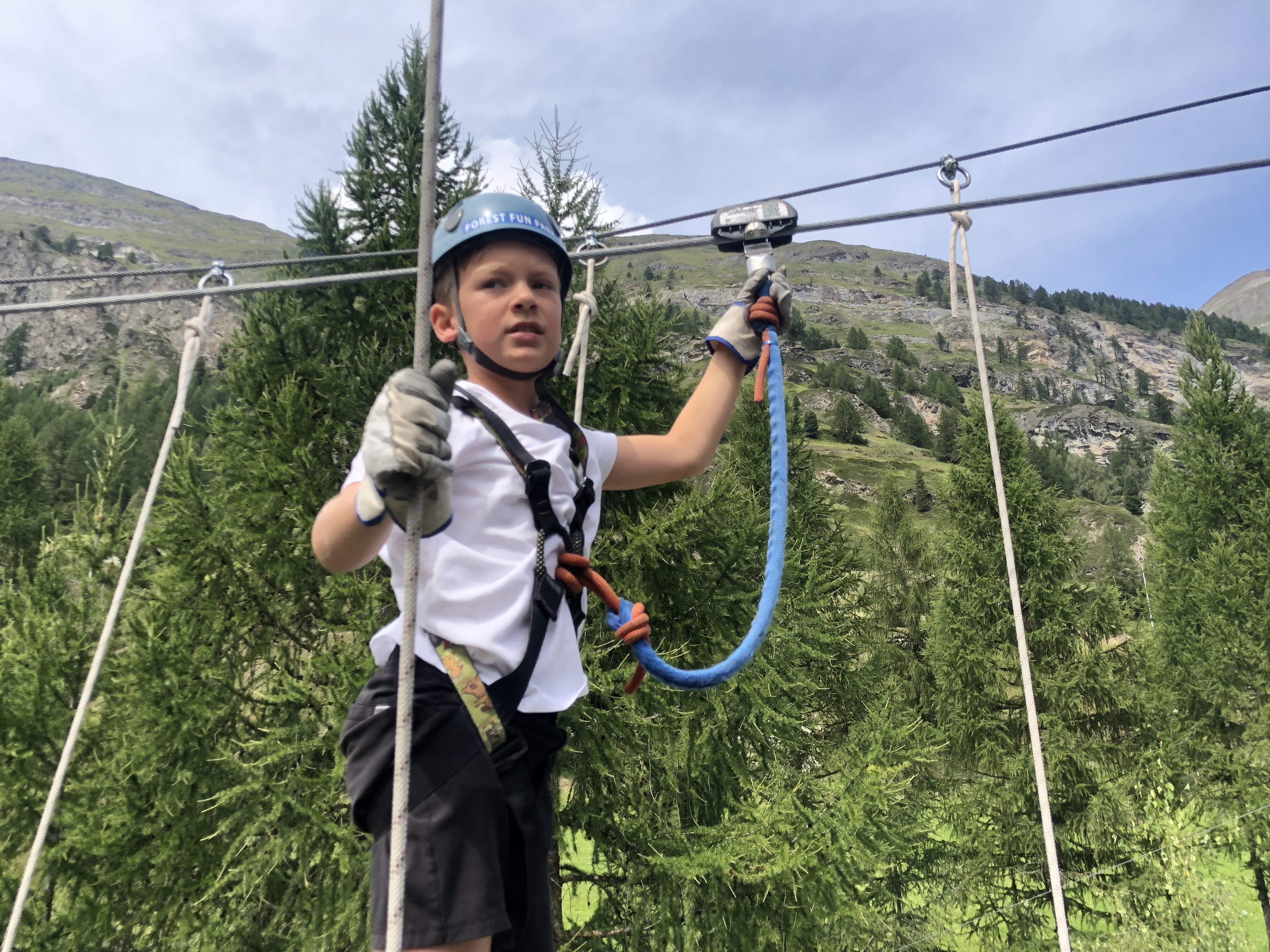 Kid’s zip-line and climbing playground at Forest Fun Park, Zermatt