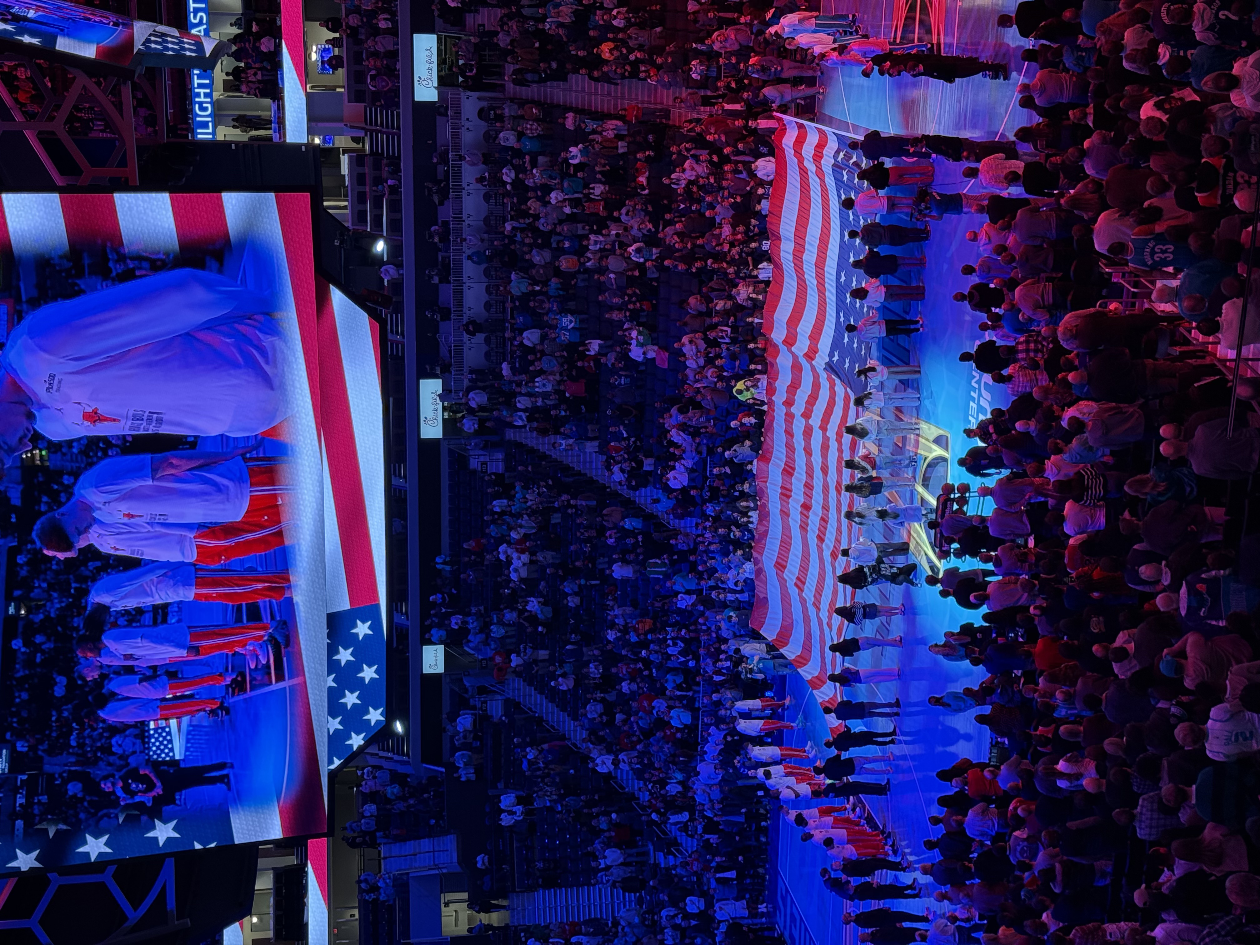 A powerful moment at Charlotte Hornets—the arena united, the flag unfurled, and a pause to honor what brings us together.