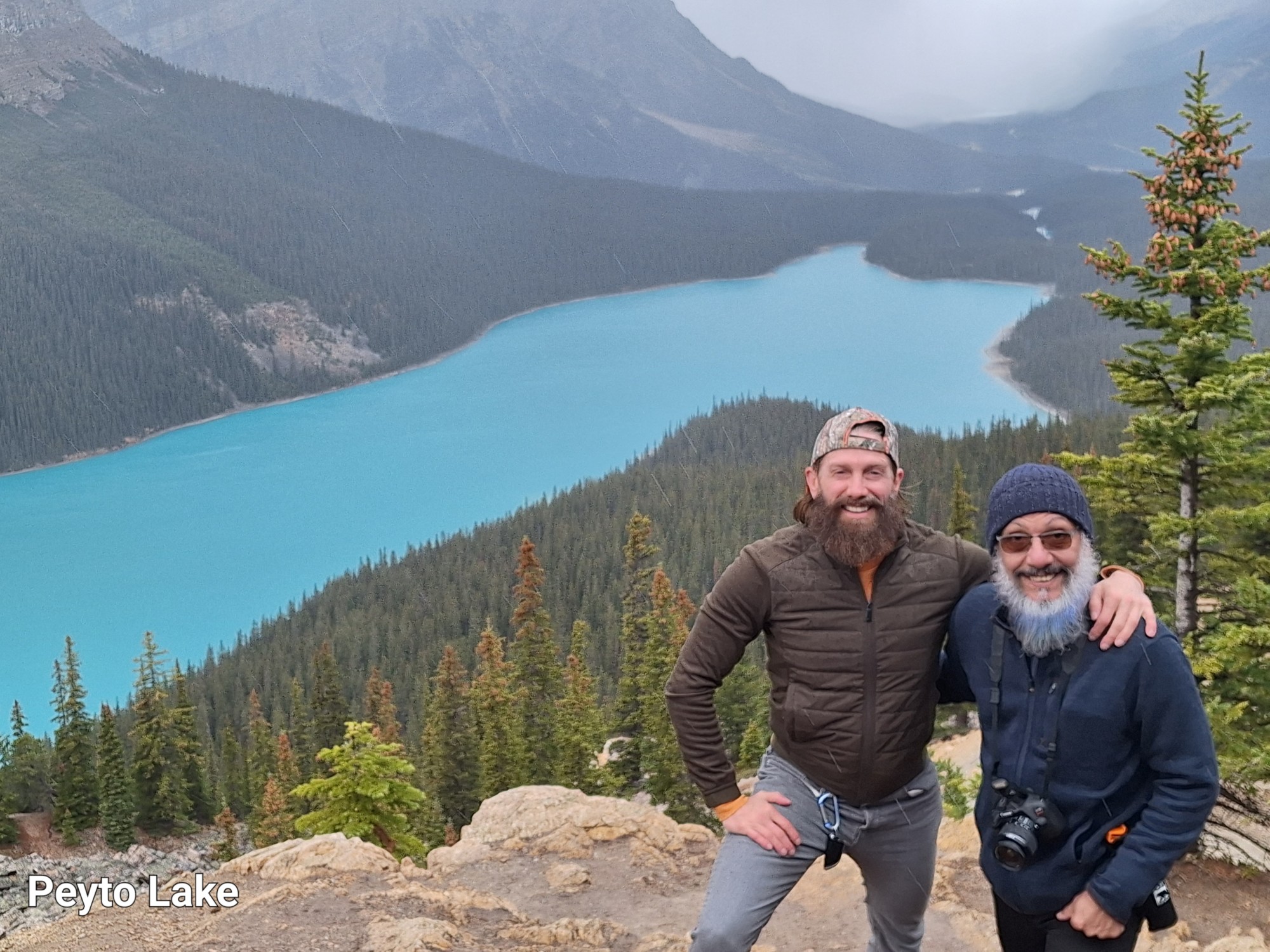 After having a campsite breakfast of eggs & sausage with salmon bits, we drove north to Peyto Lake. The turquoise waters with part of the lake shaped as a wolfs head made for some great photos. We did a hike to Bow Lake Summit. Good idea to bring some ponchos if it is overcast because there was some light rain. After returning to Banff, we stopped at an IGA supermarket for food and a much-needed Duralog. This kept our pit fire going, whereas before it would fizzle out too quickly. So highly recommend Duralog for campfires. With that consistent burning flame, we ended the night roasting chicken kebab, washing it down with Crown Royal to a star-filled moonlit sky.