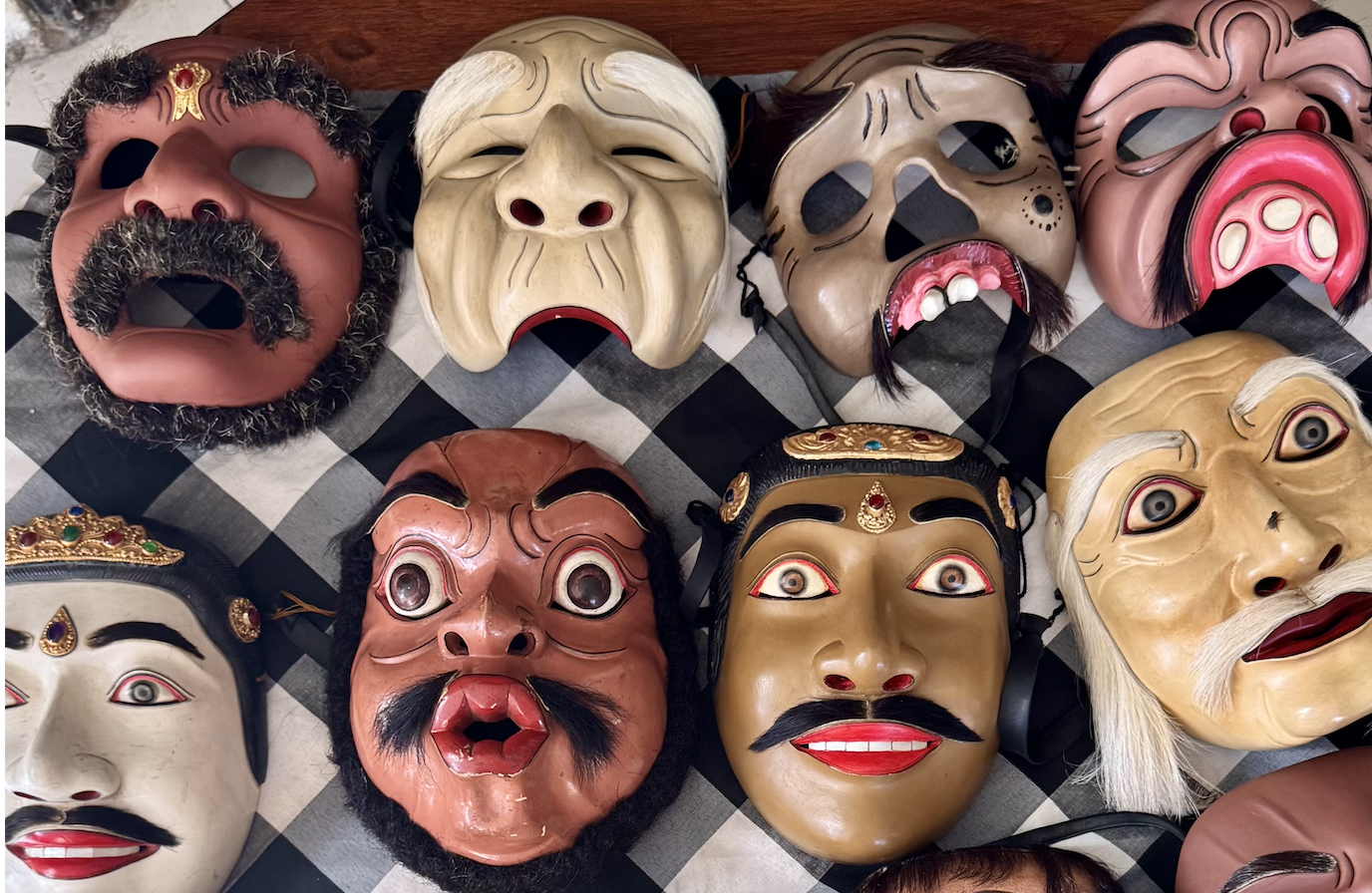 We departed Ubud and headed toward Denpasar, stopping for what we thought would be a short mask-carving demonstration. Instead, it turned into a six-hour hands-on workshop—complete with Indonesian Uber Eats for lunch.