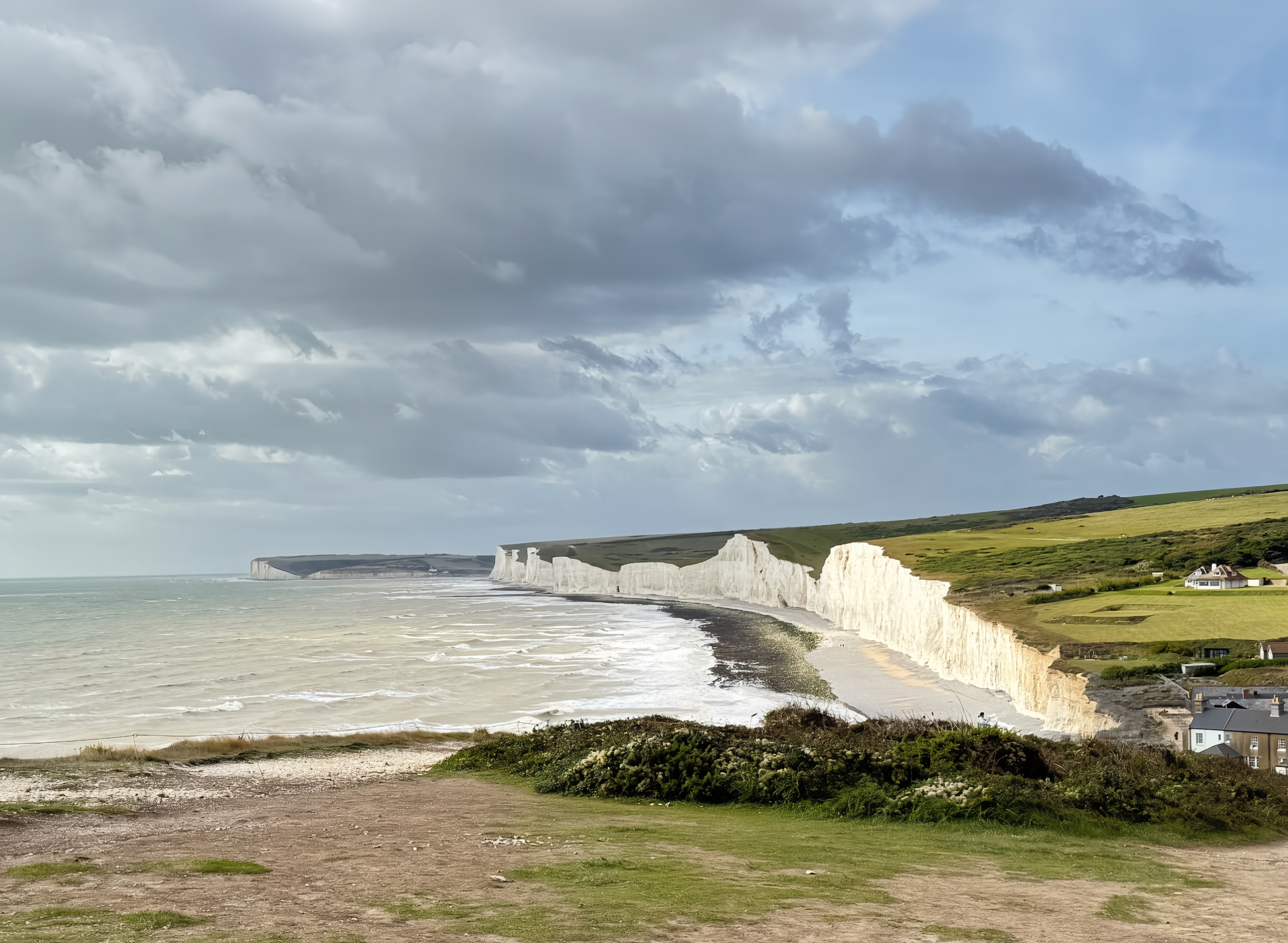 In the afternoon, venture to the Seven Sisters Cliffs, where the chalk cliffs rise dramatically from the sparkling blue sea. Walk along the undulating paths, and marvel at the striking white cliffs contrasting against the green rolling hills. This iconic coastline offers some of the most breathtaking panoramic views in southern England—a paradise for photography and nature lovers alike.