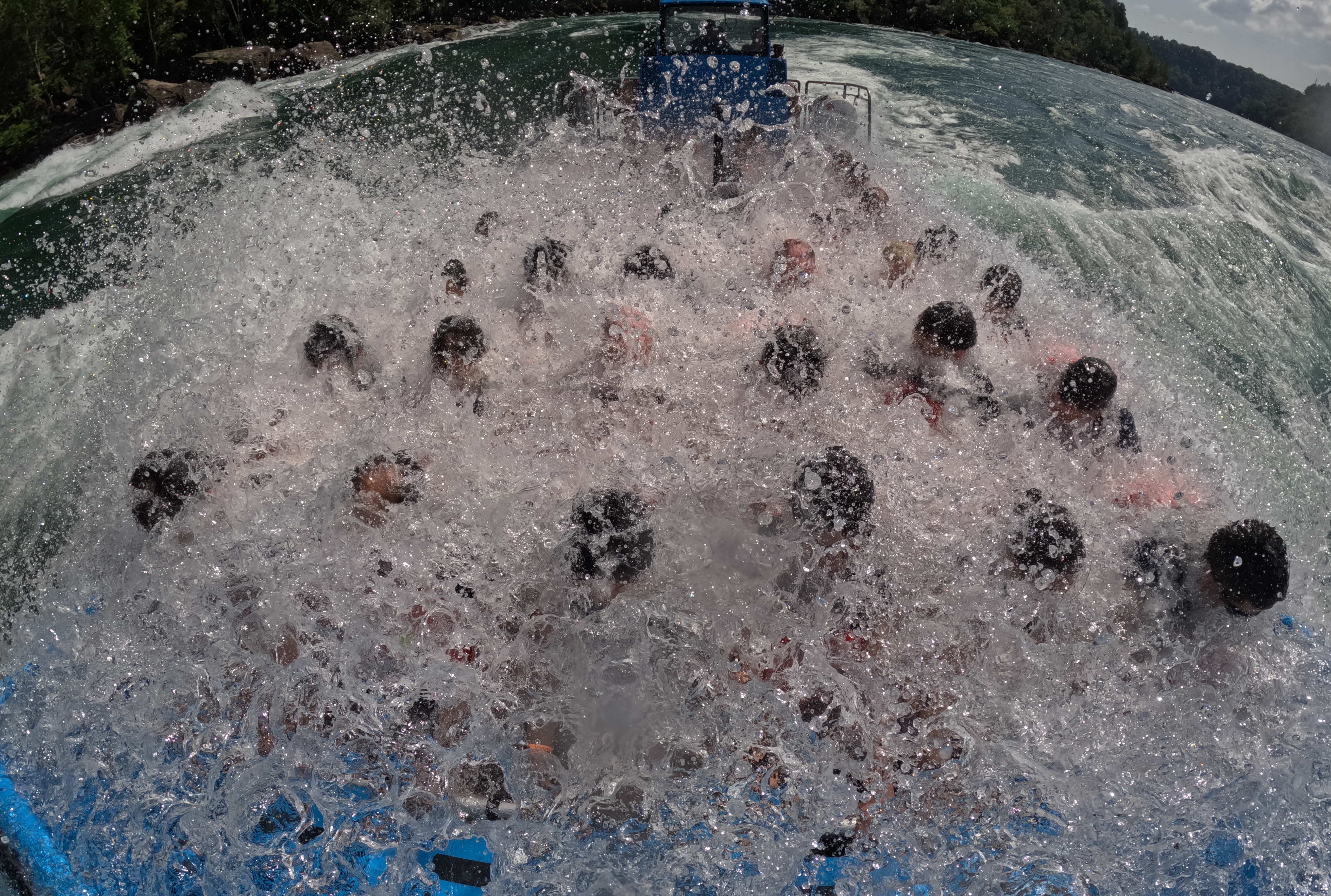 Mid-ride whirlpool jet boat tour captured by onboard cameras