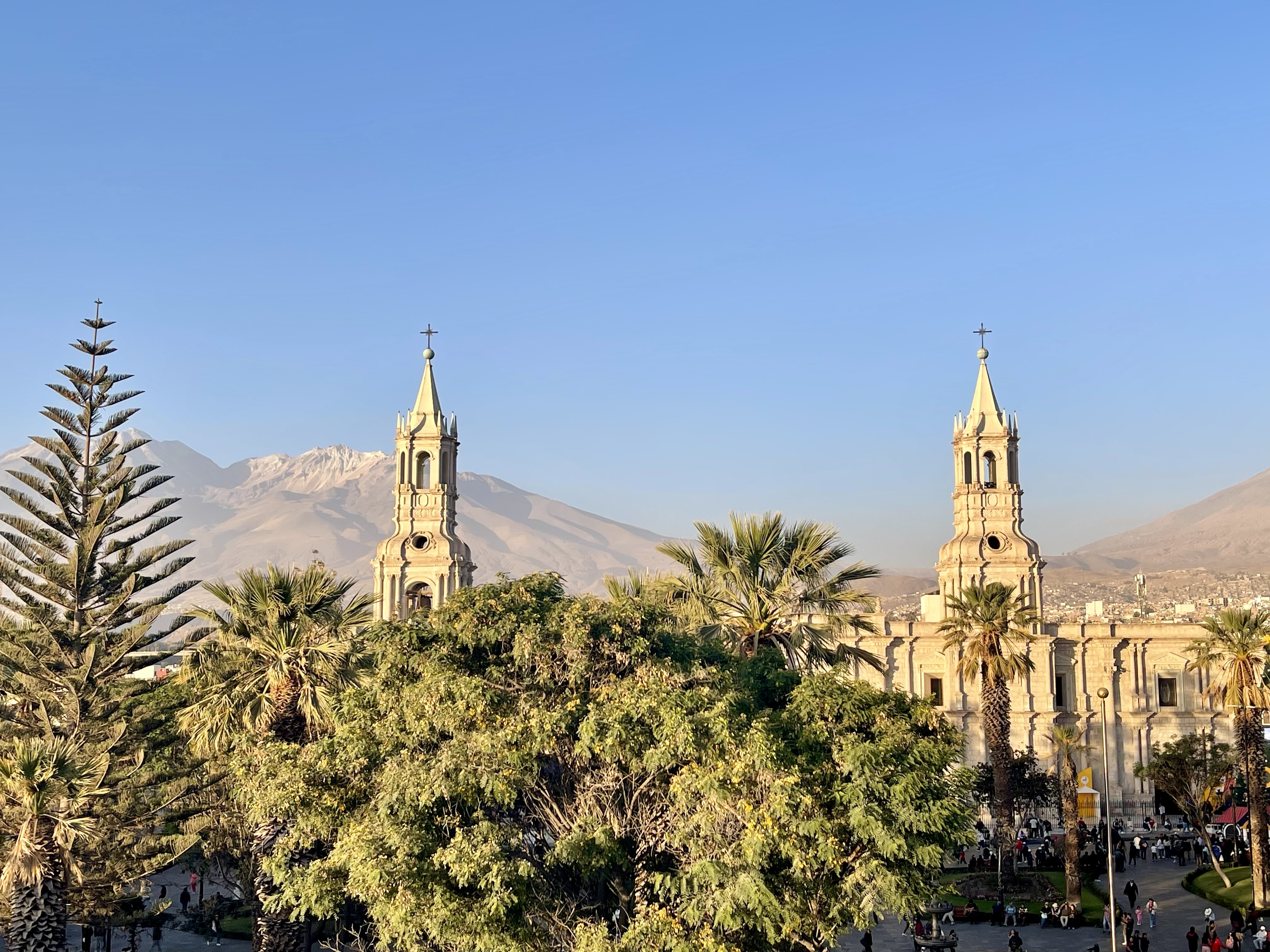 Peru is home to over 400 volcanoes, and three of the most iconic—Misti, Chachani, and Pichu Pichu—frame Arequipa’s skyline. In the indigenous Andean tradition, these mountains are considered guardians of the city, and the Peruvian relationship with the volcanoes and with Pachamama (Mother Earth) adds a spiritual dimension to the landscape that feels palpable when you’re there. The views are especially striking from the Katari Hotel rooftop and from the Plaza de Armas at sunset.