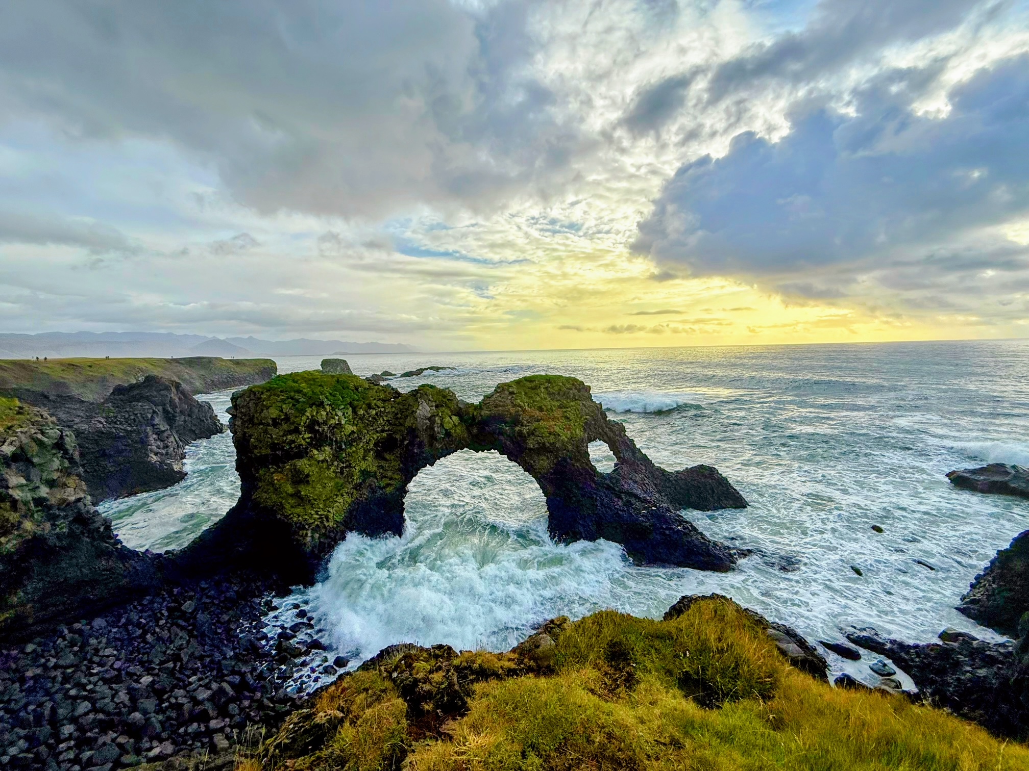 It’s easy to do the majority of the peninsula in one day. We started clockwise and stopped at locations like Londrangar Viewpoint, Malarrif Lighthouse, Djupalonssandur, Saxholl crater, Kirkjufell, and Bjarnarfoss.
