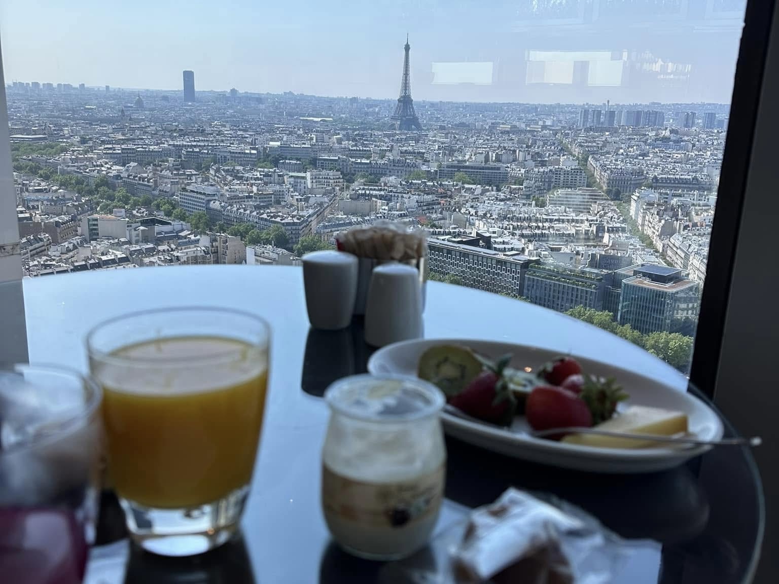Breakfast with the Eiffel Tower—fueling up for a day of parks, playgrounds, and pastries.