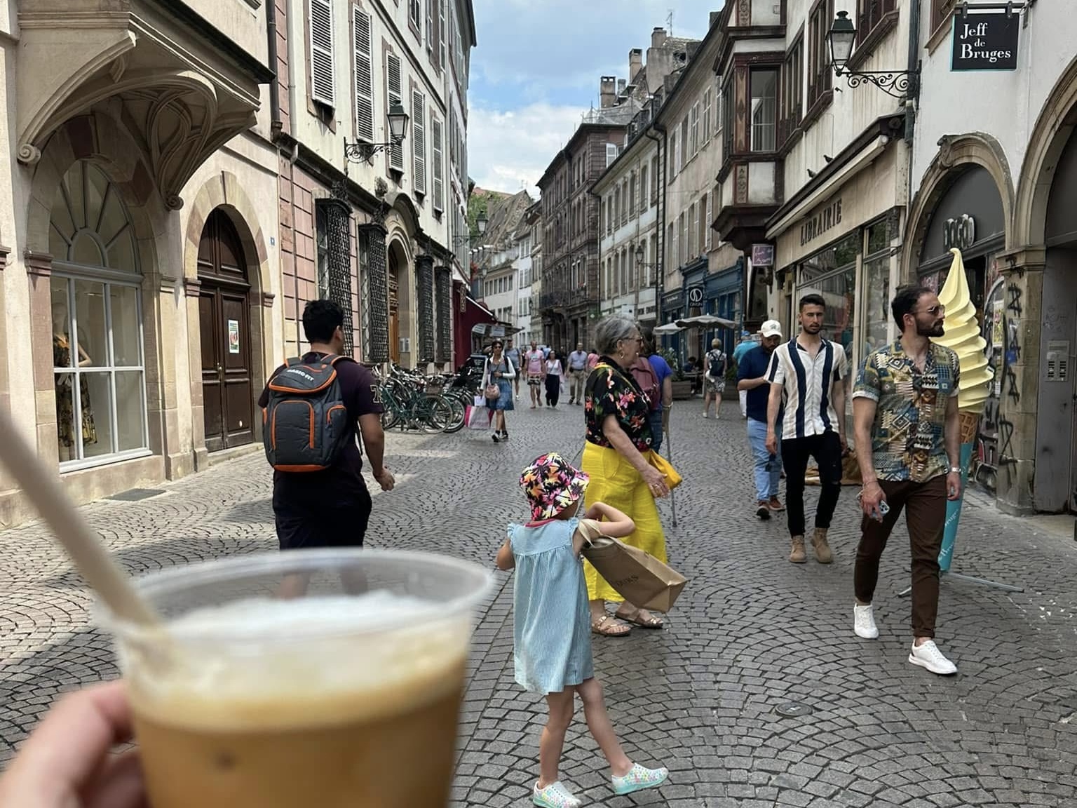 Coffee for me, cobblestones for them. A perfect Strasbourg walk.