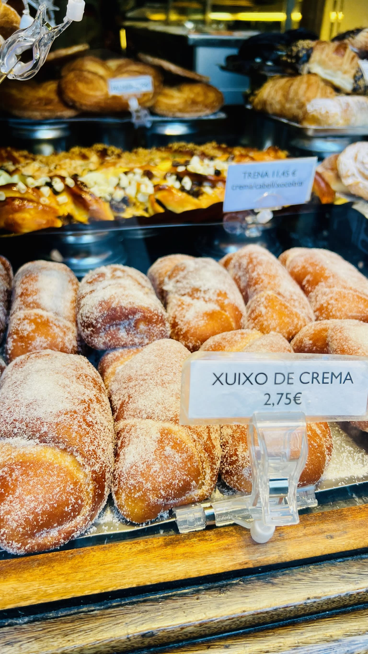 Start your morning at La Colmena for a fresh xuixo (often spelled xuxo)—golden, sugar-dusted, filled with silky crema. Order it with coffee and stand outside. This is the ritual—and I recommend you order two. Yes, they're worth every calorie.