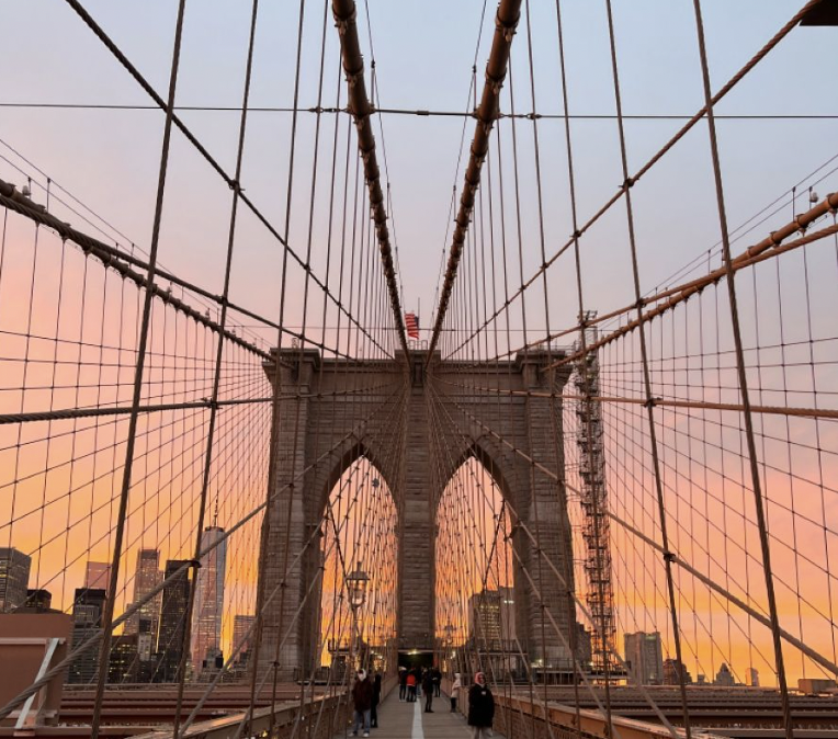 Rise and shine! You’ve got an early morning for a sunrise walk on the Brooklyn Bridge. Leave your hotel and head to the entrance to the Brooklyn Bridge on the Manhattan side, right across from City Hall. You’ll want to bundle up and dress warm—lots of layers, warm socks, a hat and mittens, and, of course, a warm coat. The bridge has an entire section fully dedicated to pedestrians, so no worries about being close to cars or motorcycles. Enjoy the absolutely stunning views of the sun rising over the city and World Trade Center—it’s truly breathtaking