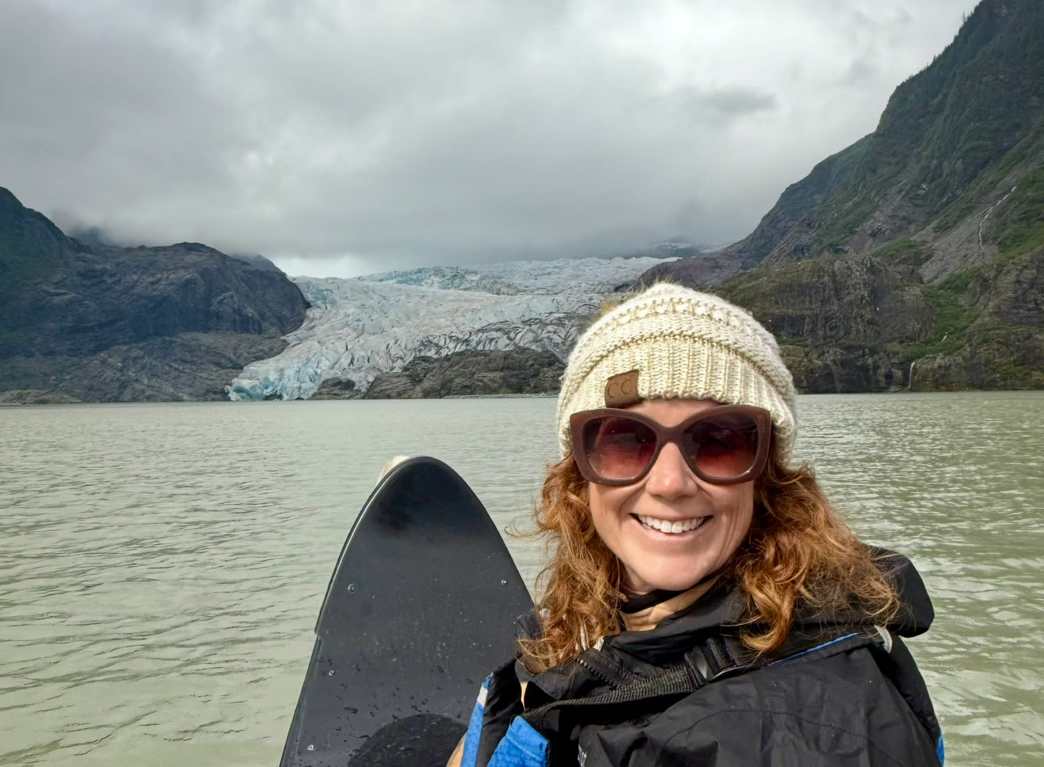 Canoeing on Mendenhall Lake with view of glacier