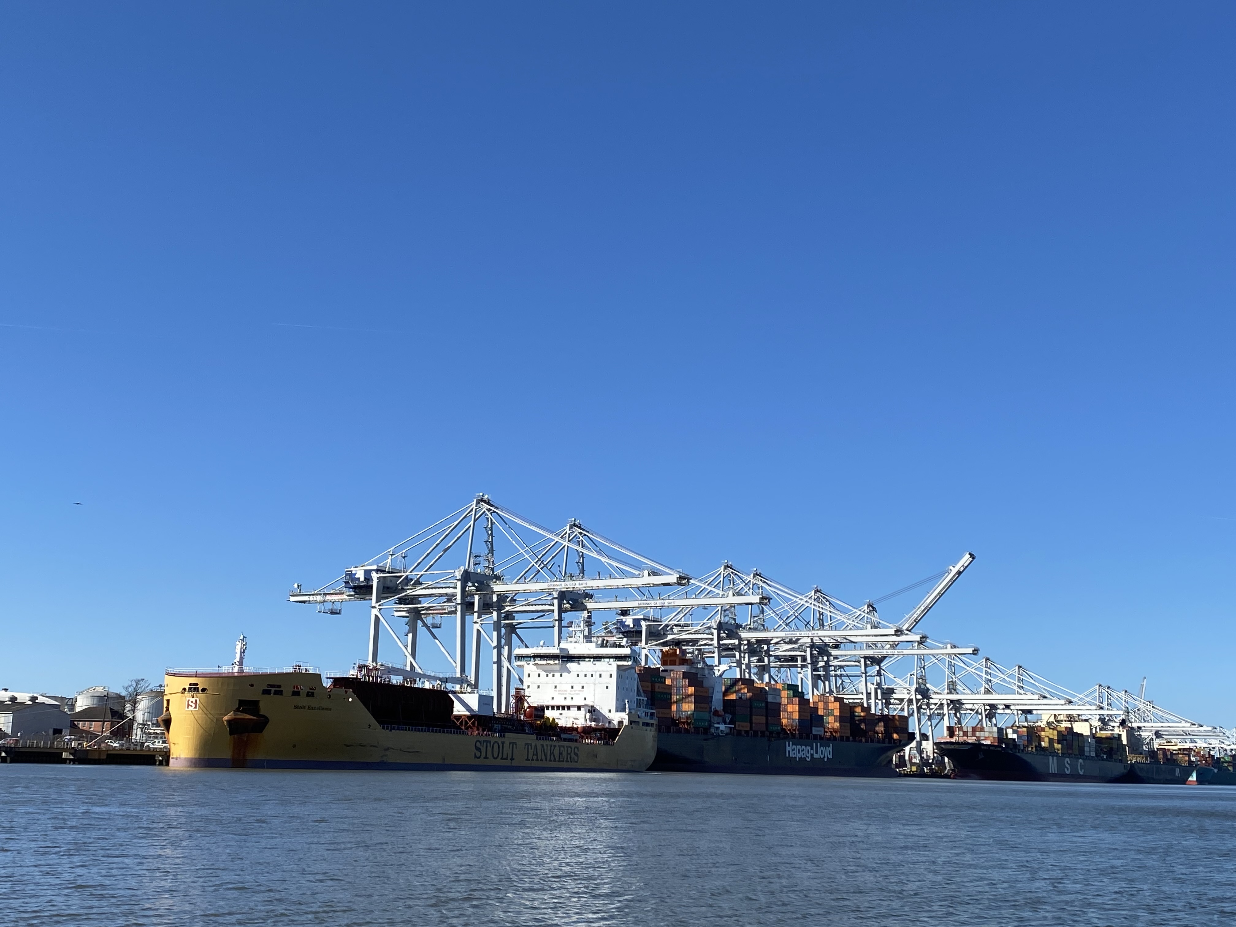 Getting a close look at the cargo ships in the Savannah port.
