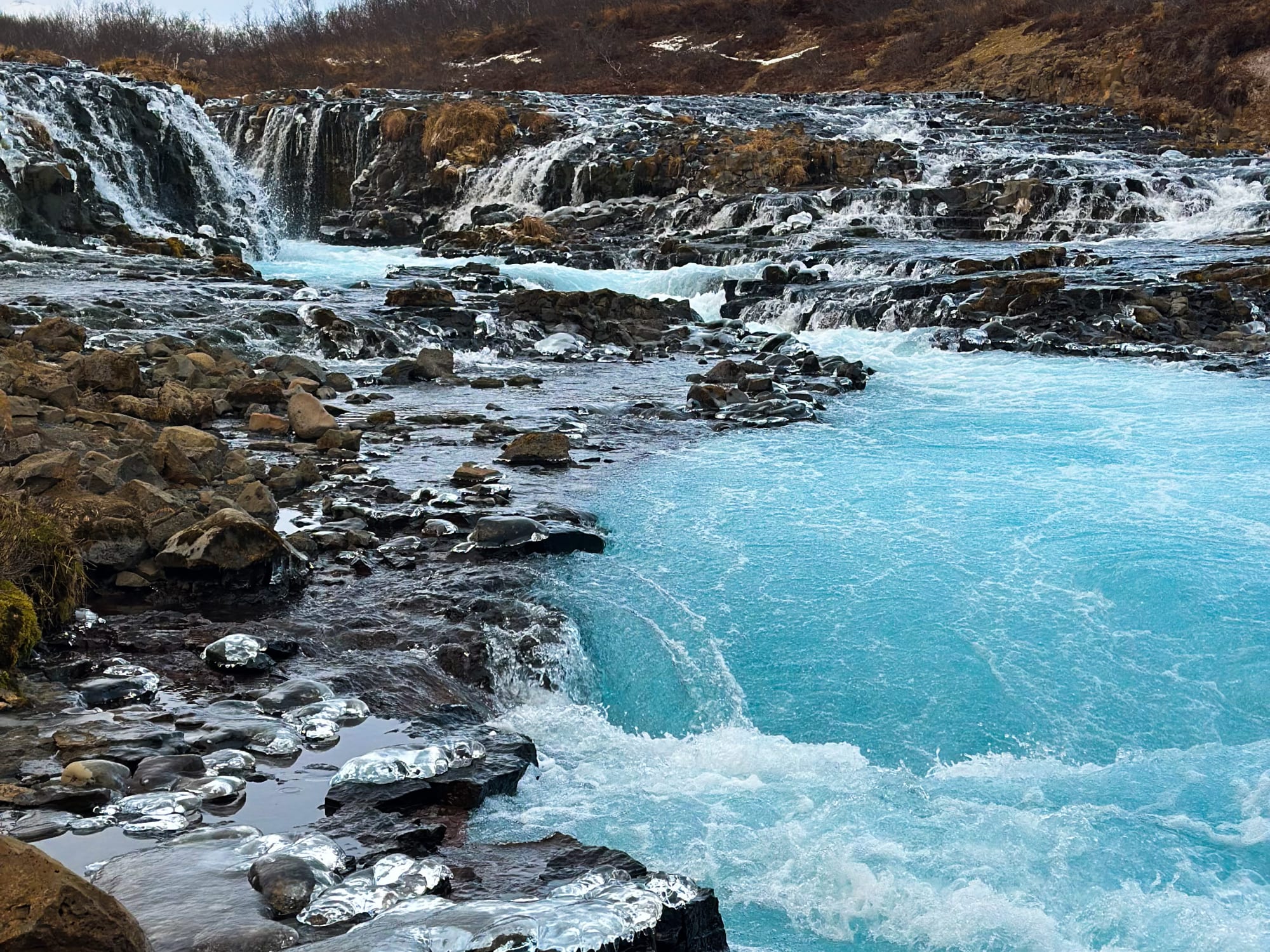 For a hidden gem, make a detour to Bruarfoss, a stunning waterfall that’s tucked away. It’s much easier to access now, so don’t miss it!