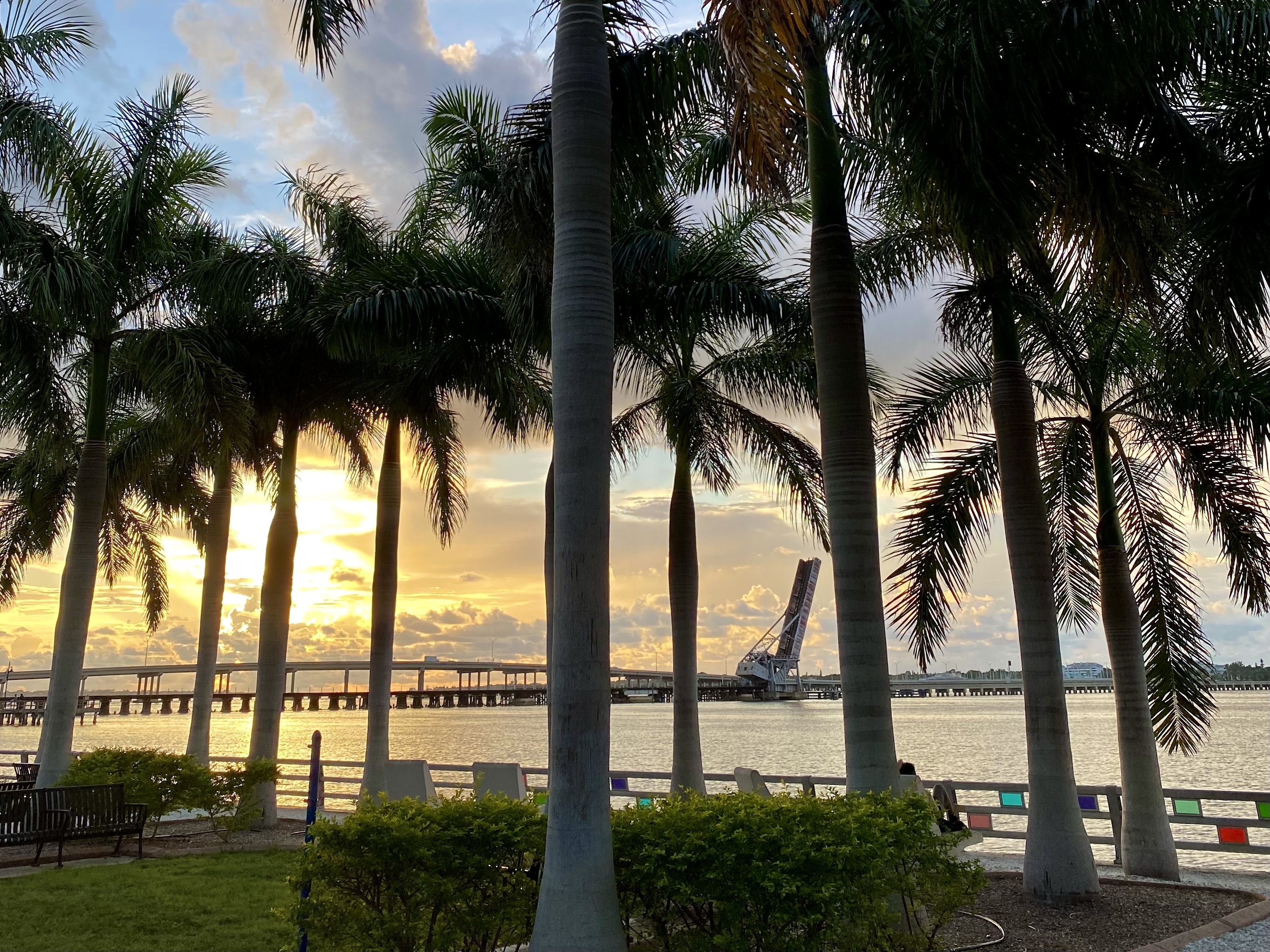 Bradenton Riverwalk at sunset: a perfect start (or end) to any Gulf Coast getaway, just minutes from Anna Maria Island!