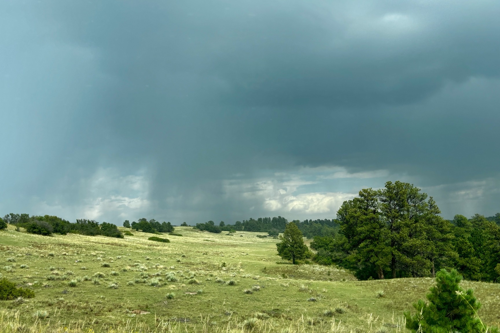 The drive back to Denver was a complete change of pace. Instead of winding mountain roads and busy Colorado Springs, we cruised through flat pastures and ranchland dotted with cows and horses. At one point, we saw a summer storm in the distance, rain streaking down against the green fields. It looked dramatic from afar, but by the time we reached it, the storm had already passed. The air felt fresh, the skies cleared, and the landscape looked even more vibrant. It was peaceful, open, and the perfect contrast to the high-altitude adventure from the day before.
