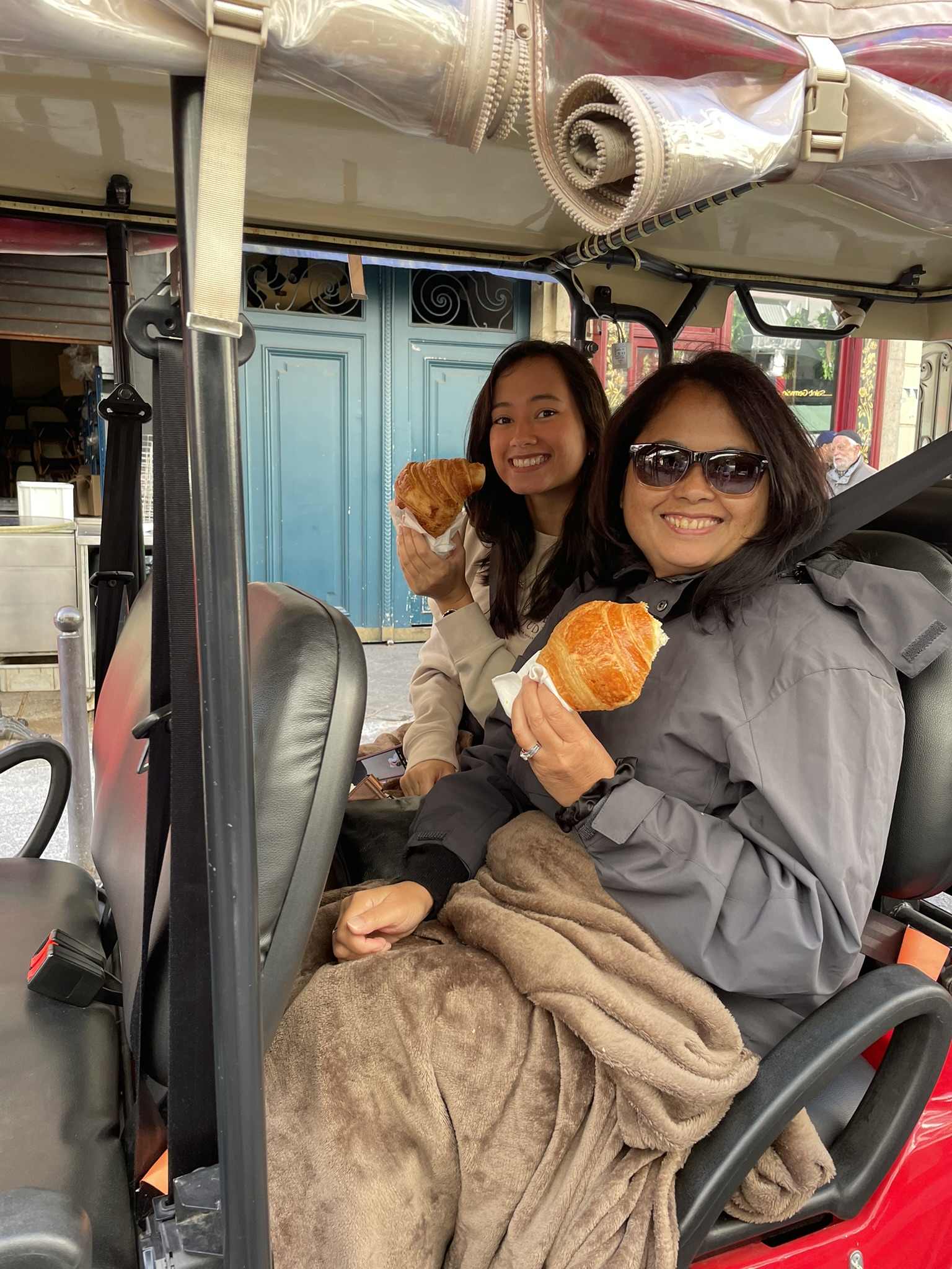 Afternoon: The multi-neighborhood golf cart tour. We covered more ground in three hours than most do in three days. We zipped through the Latin Quarter, Saint-Germain-des-Prés, and the 8th Arrondissement, stopping for “Emily in Paris” photo ops and hidden gardens. We capped it off at the Arc de Triomphe and the Champs-Élysées.