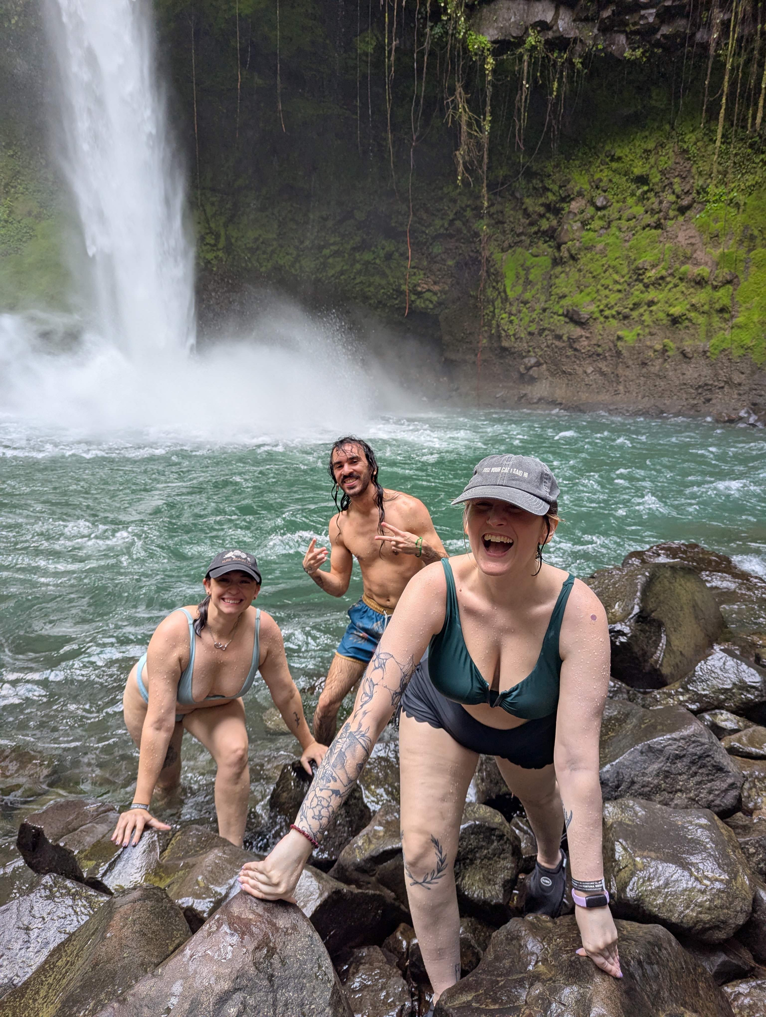 Cold and joyful at La Fortuna waterfall!