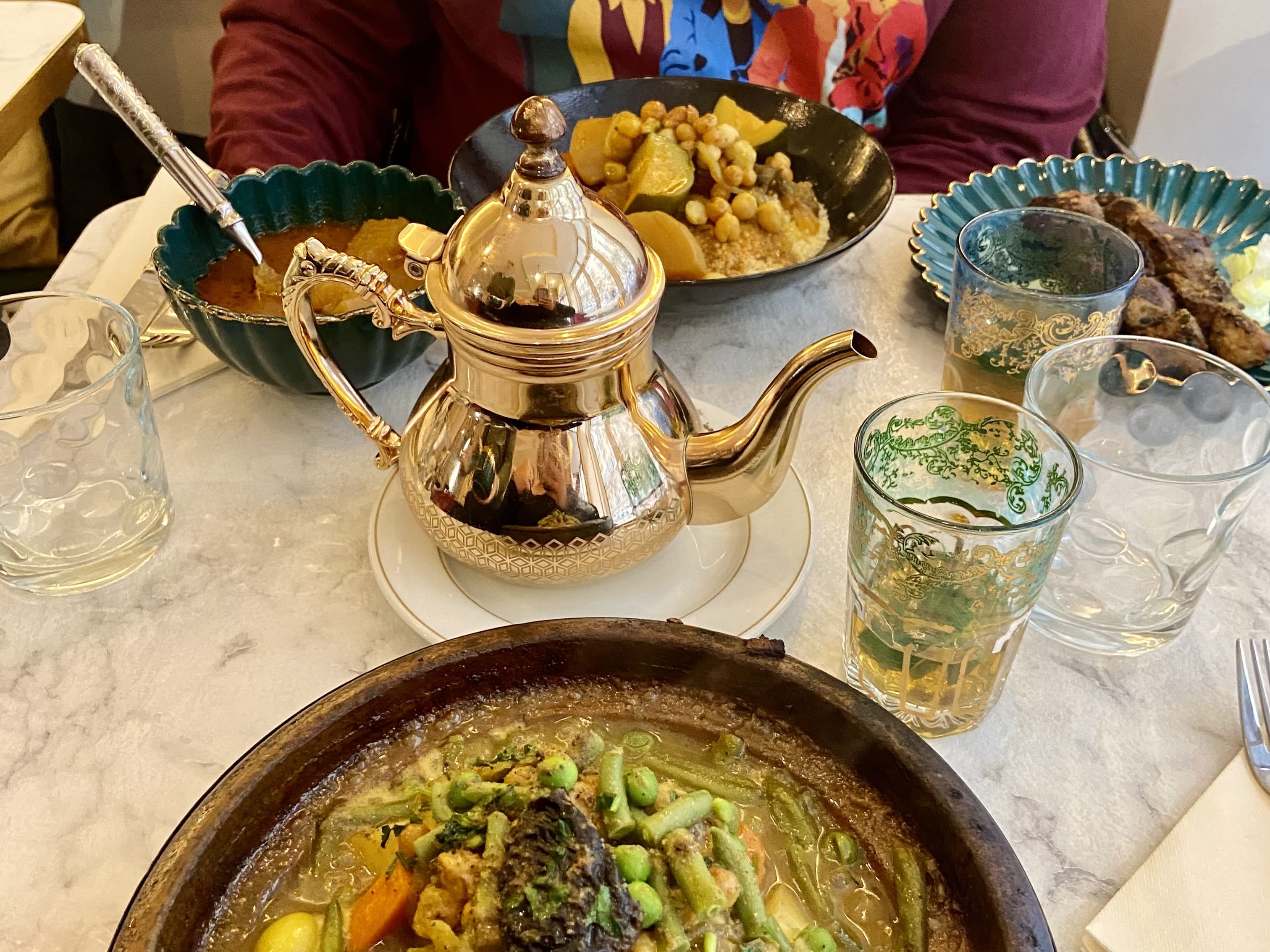 Mint tea and lamb tagine with cous cous at Étoile Longchamp (Moroccan restaurant)