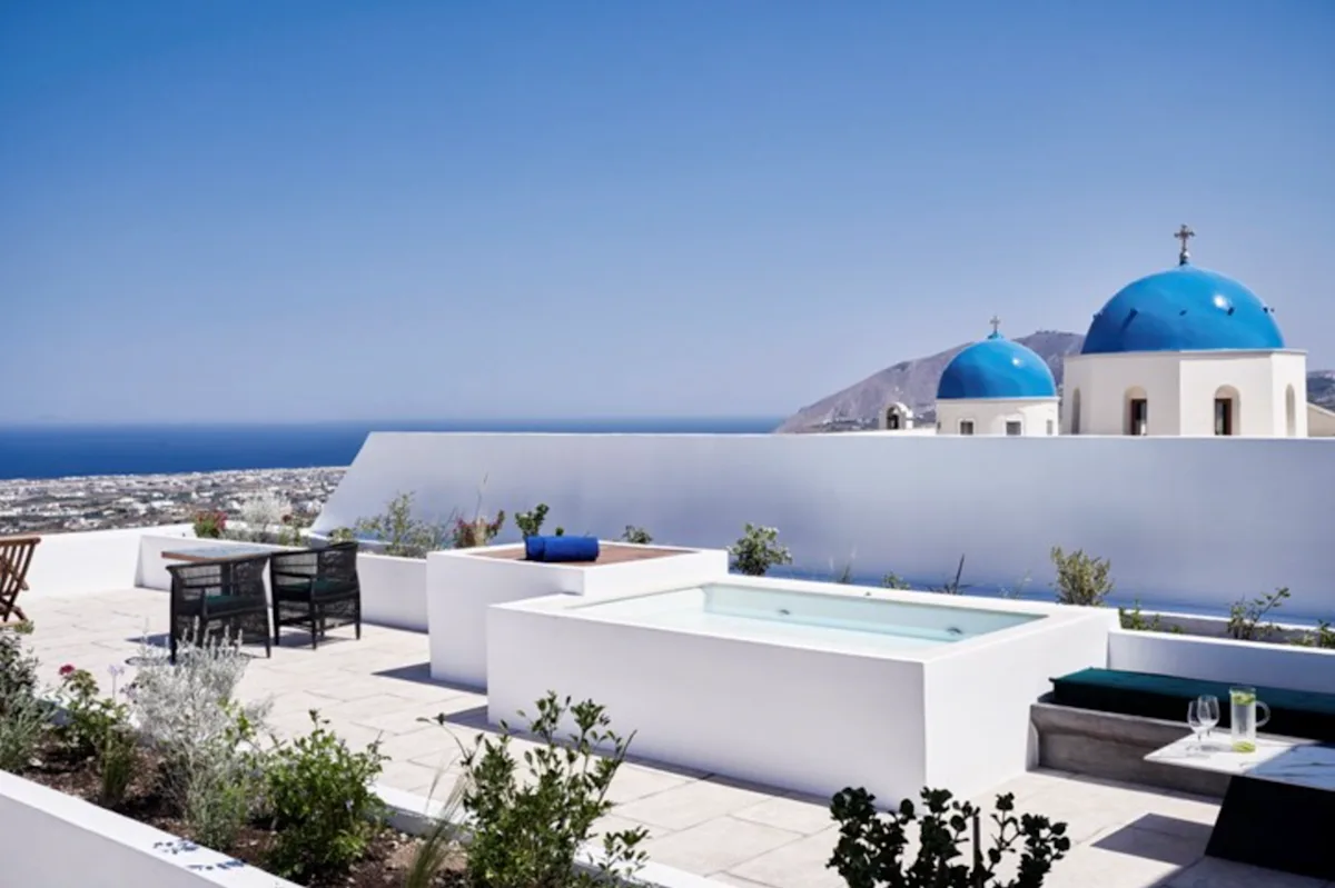 There are a few things every traveler hopes for when flying to Greece and choosing a Santorini hotel: white-washed walls that contrast with the glistening sea beyond, a hotel built directly into the cliffside, a room with enviable views of Santorini and (ideally) a private balcony and swimming pool from which to enjoy those views.