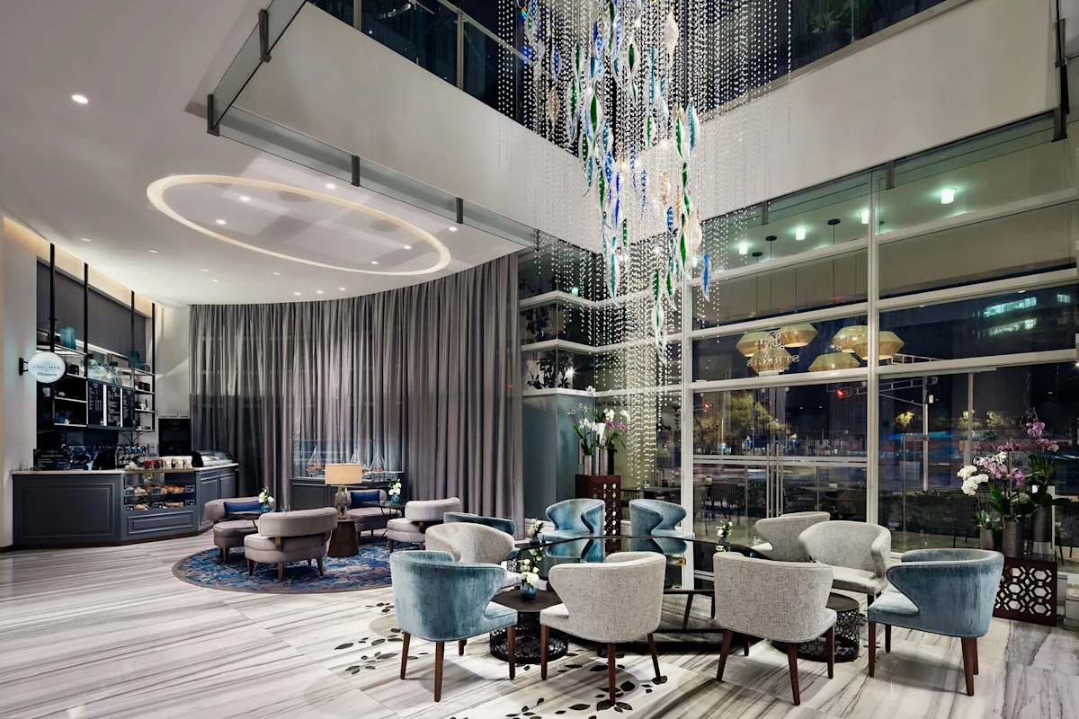 The architecture of the Sofitel is nothing short of stunning, with green glass panes flanked by white stone panels, resulting in a high-contrast look that’s as eye-catching as it is unique. The hotel offers a gorgeous view of the surrounding city, while its artful interior is equally as alluring. Among a host of amenities, you’ll find three high-end restaurants and two cocktail bars. Cityzen Rooftop Kitchen, a chic restaurant offering some of the city's most splendid views, is especially worth a visit. Enjoy refined Mexican- and French-inspired cuisine, plus expertly crafted cocktails. And, for extra relaxation, visit the lavish Sofitel Spa, stocked with fine, gorgeously scented L'Occitane products.
