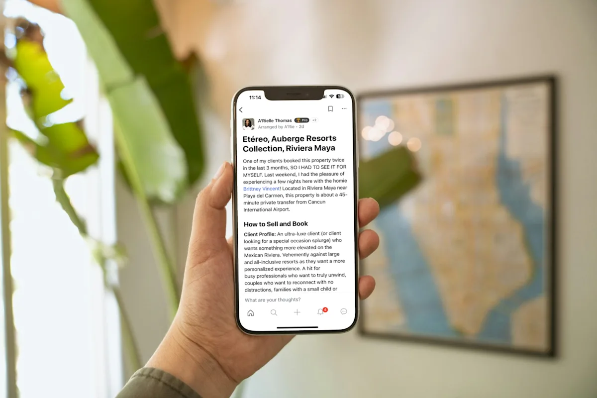 A quick skim through recent posts uncovers details from an advisor’s recent tour of The Ritz Paris (with details like the subtle differences between room categories and recommendations on what to order for brunch) and another’s personal stay at Etéreo, Auberge Resorts Collection, Riviera Maya with her tips on the types of clients who would be happiest there.