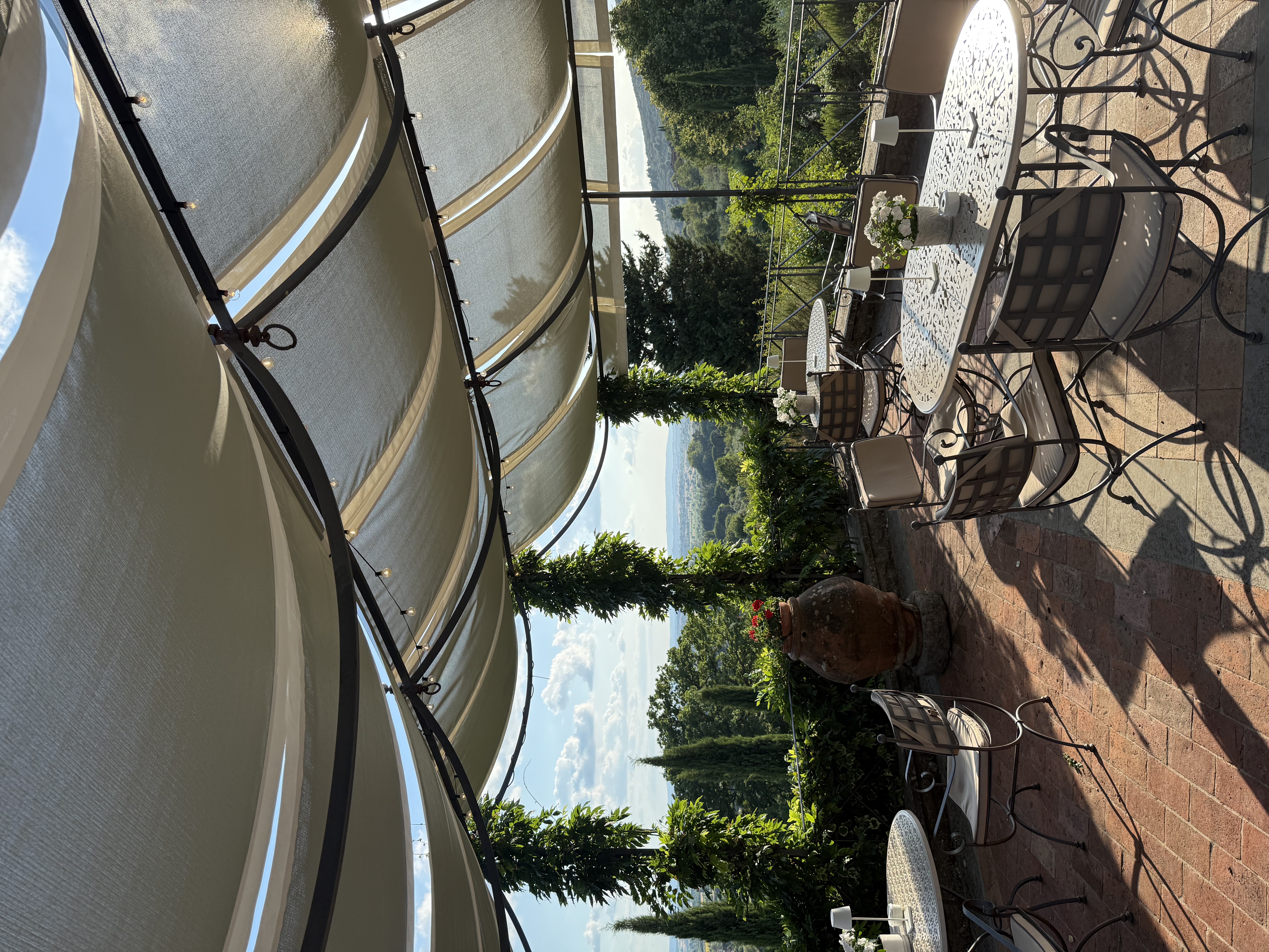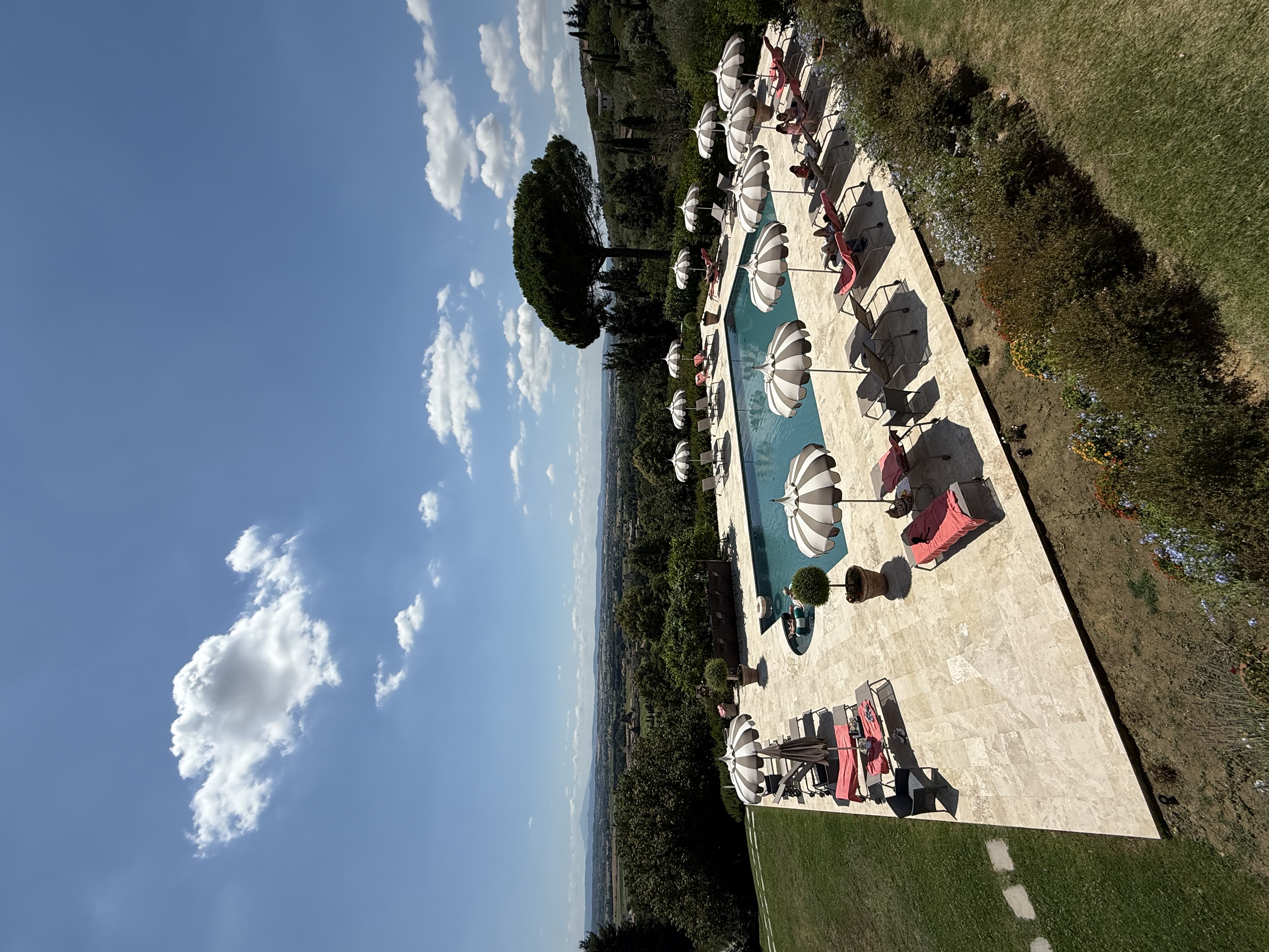 Our Junior Suite, overlooking one of two serene outdoor pools, exuded timeless Tuscan elegance. Though the accommodations were newly built in 2018, they honored the design and ambiance of historic villas—with antique-style furnishings, a plush king-sized bed, and double balconies that framed postcard-worthy views of the countryside.