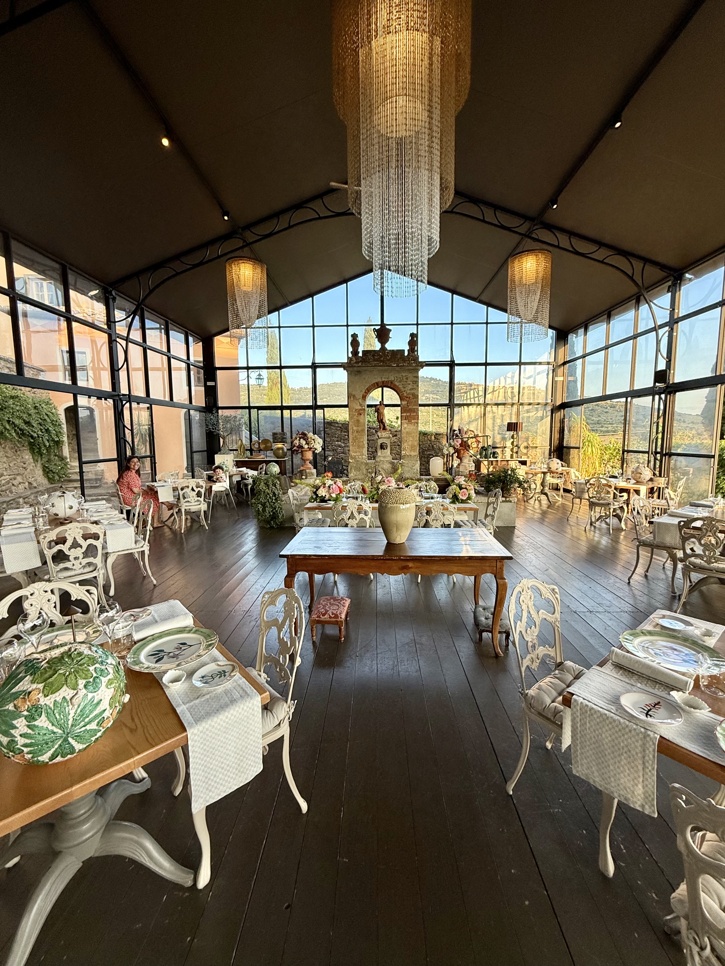 Culinary experiences are where Il Falconiere truly shines. The resort’s Michelin-starred restaurant, helmed by Chef Silvia, is one of the most exquisite dining experiences I’ve had in Italy. With soaring windows that frame the vineyard-draped hills, the dining room is as visually breathtaking as the food itself. Every plate is a masterpiece—and while the cuisine is refined, the ambiance is relaxed and welcoming (yes, even with our 18-month-old in tow!).