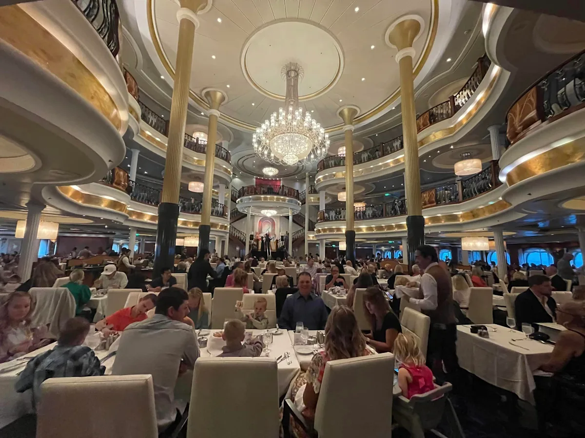 The food is always amazing onboard the ship. We are never disappointed. We tend to not pay the extra for the in person experiences, the included meals are above and beyond! I loved to see the look on my kids faces when we walked into the main dining room! The staff really does a great job with families!