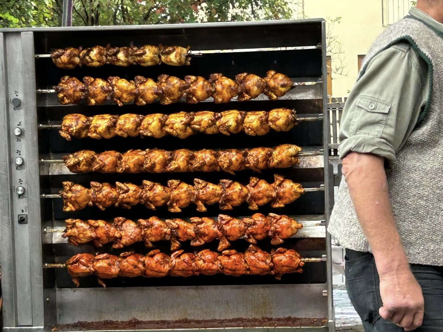 Chickens roasting to perfection