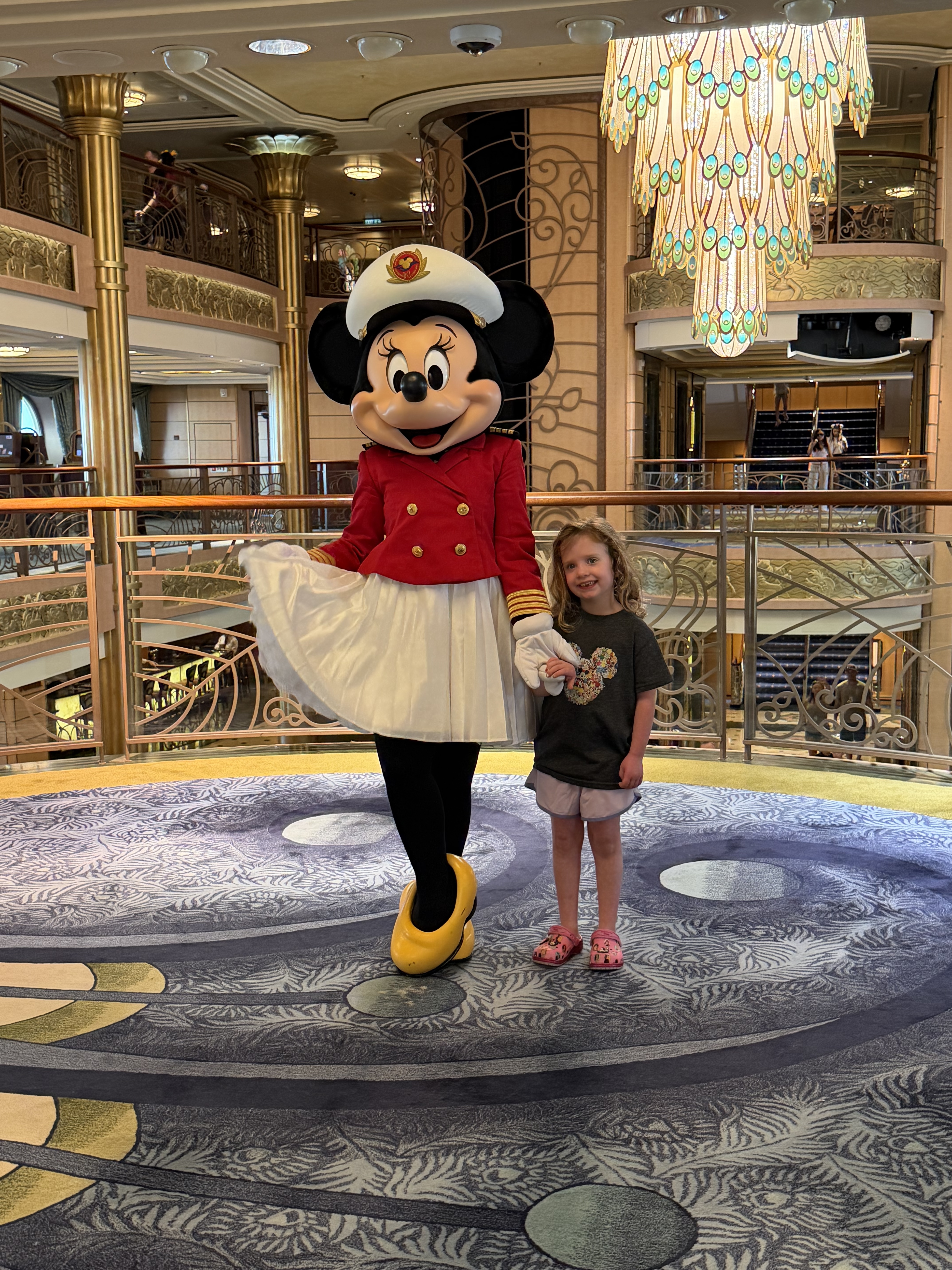 Our sailing aboard the Disney Fantasy was the perfect continuation of a Walt Disney World visit, creating what Disney fans call the ultimate “land and sea” vacation. The ship itself is stunning, with classic ocean-liner design paired with modern luxury. One of the first spaces guests experience is the breathtaking atrium lobby, which sets the tone for the entire cruise—elegant, welcoming, and unmistakably Disney.