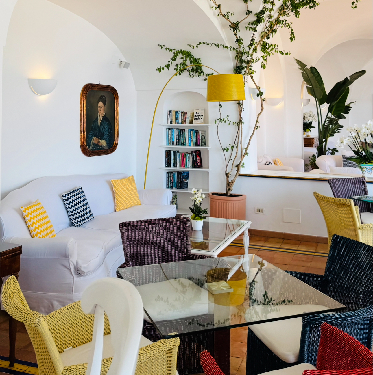 La Coquille Cocktail Lounge Bar: This space is gorgeous and available for guests to enjoy all throughout the day and night. Enjoy the open-air space with giant windows facing Positano.