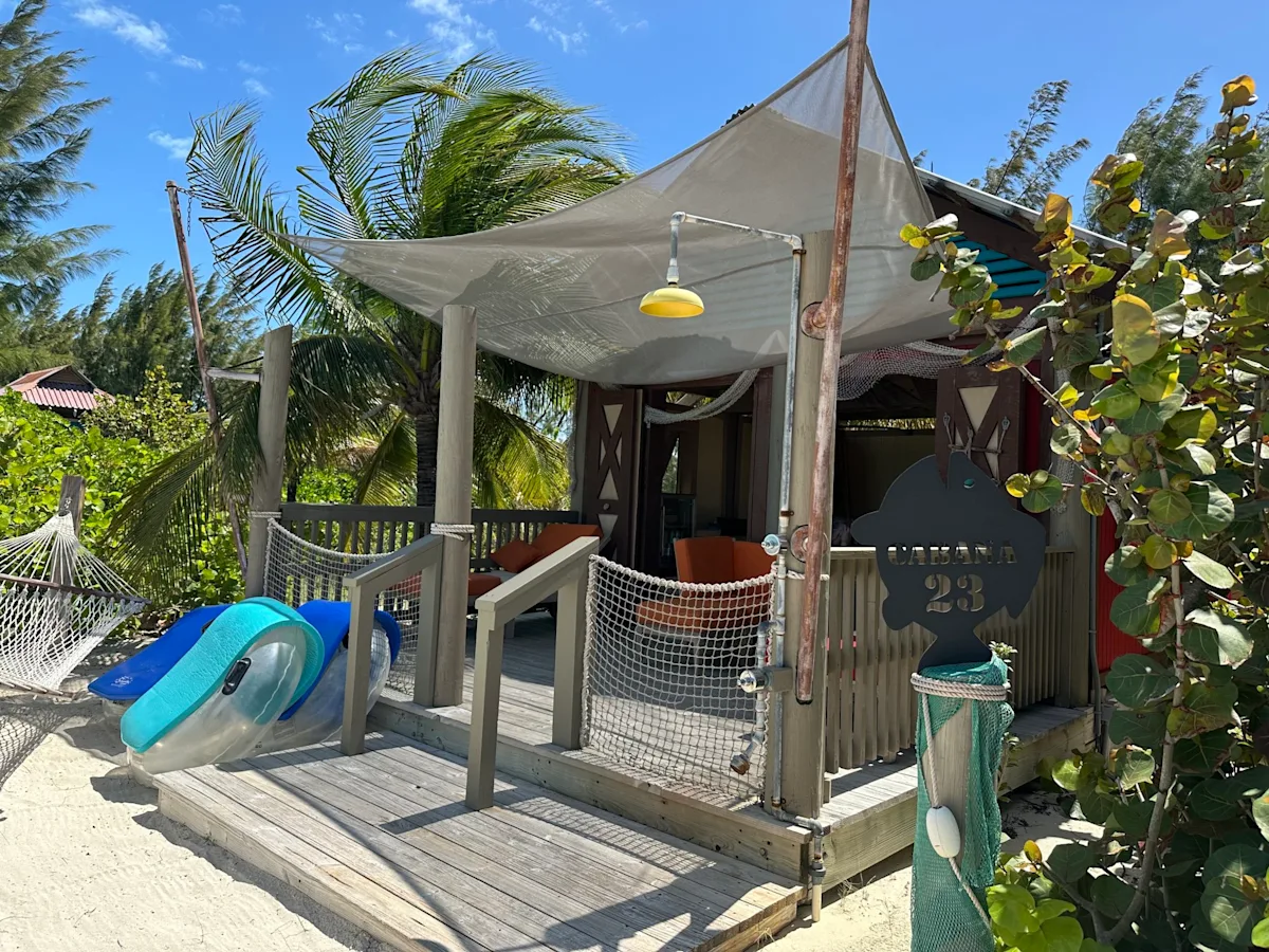 I do not recommend reserving the much sought-after Castaway Cay cabanas, as they are overpriced for the amount of time you will actually be on island. If you do wish to book, the Serenity Bay Cabana #23 or 24 are my recommendation, as they enjoy direct beach access.