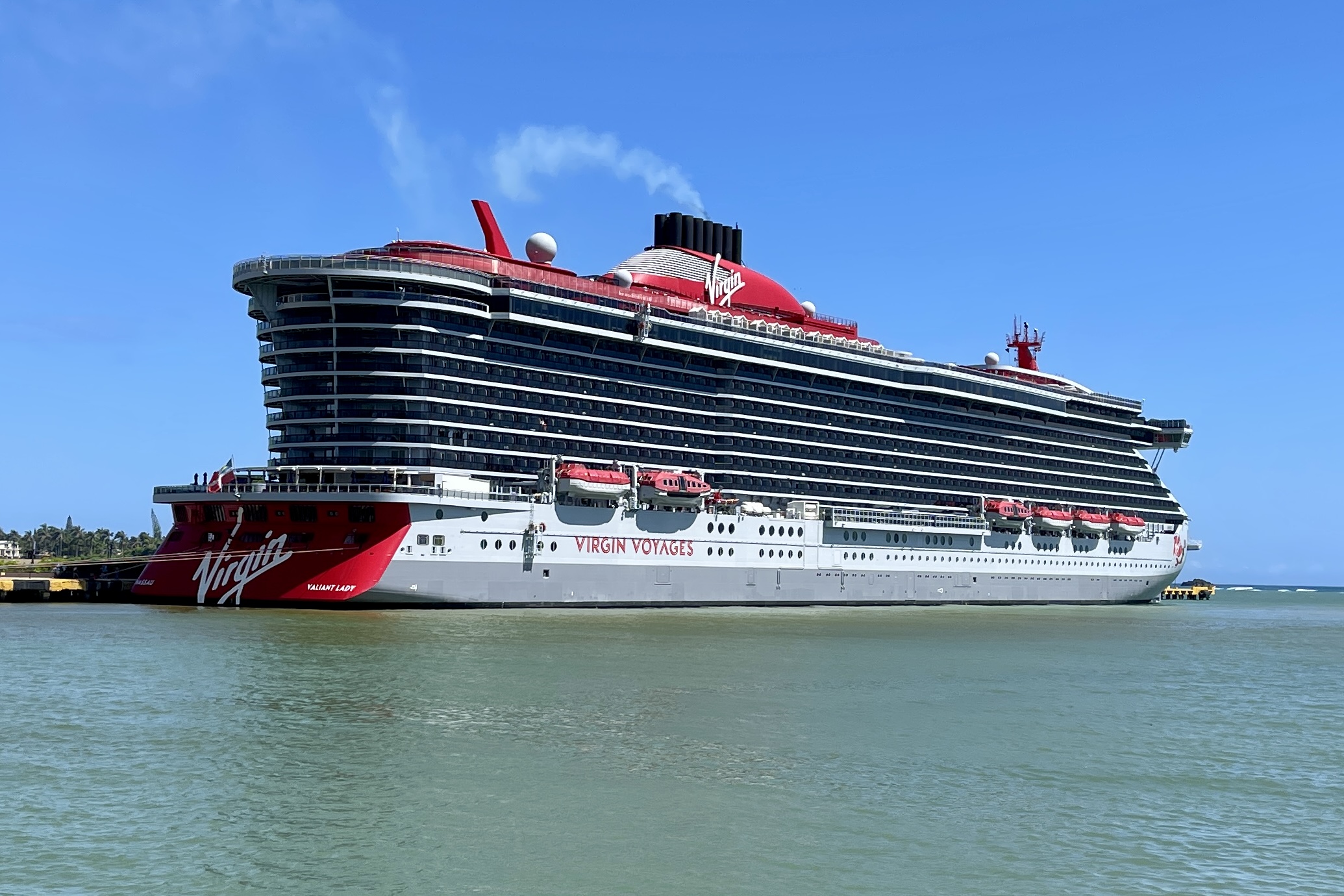 Virgin Voyages ships are filled with LED-lit phrases, unique restaurant and venue entrance halls, red mirrors, and a mermaid painted on the bow (unique to each ship).