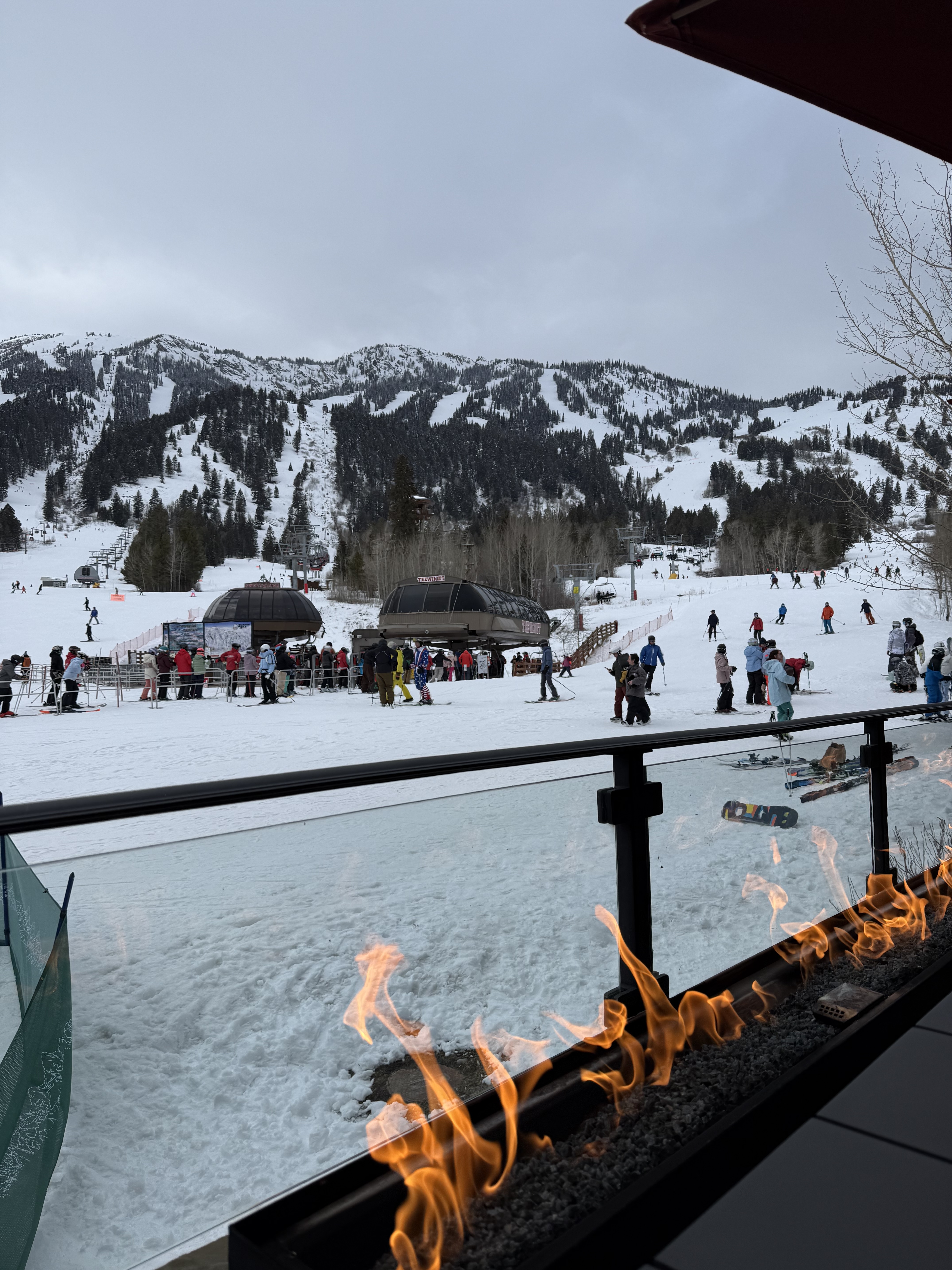 Après-ski is a major part of the Jackson Hole culture. Inside the Four Seasons, The Handle Bar is one of the village’s most iconic après spots. Located right at the base of the mountain, it’s a lively scene with DJs, cocktails, and front-row views of skiers coming down the slopes. As hotel guests, we were able to snag an incredible table by the fire.