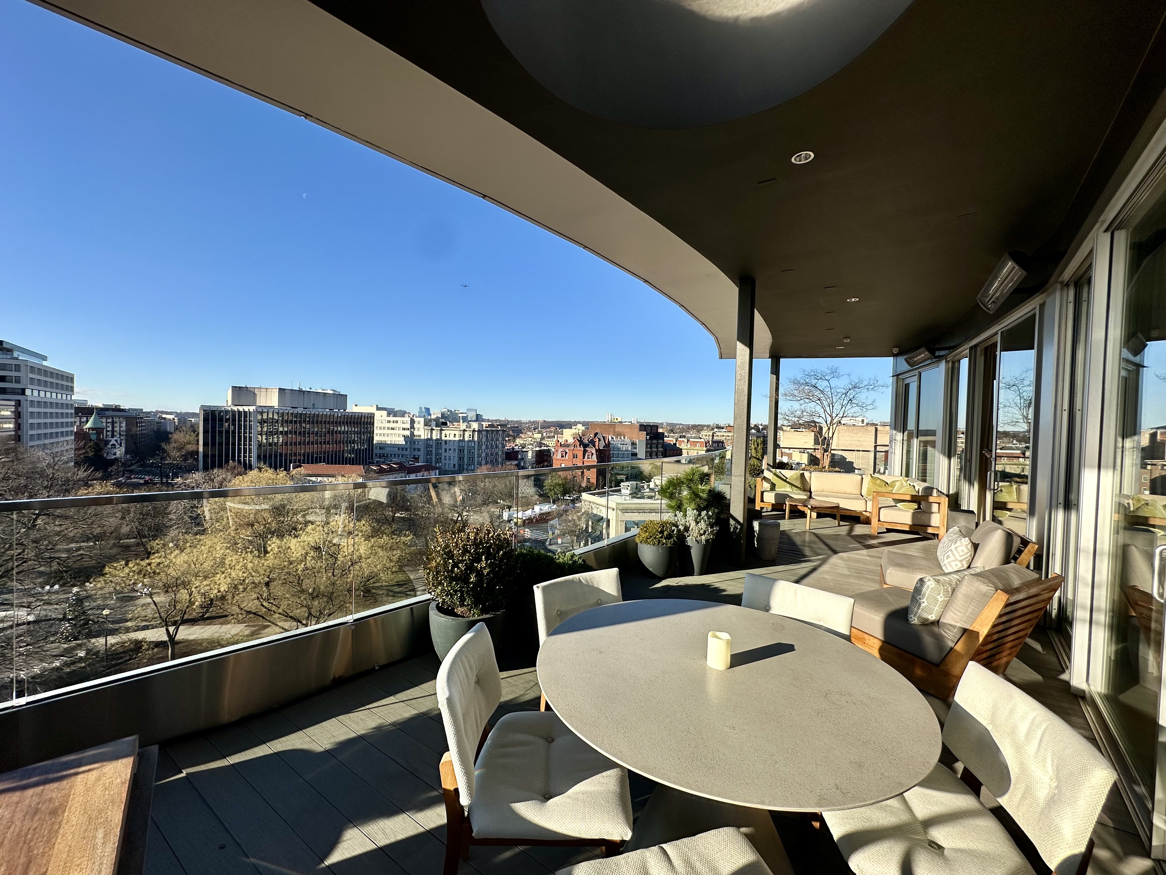 There’s valet service and an onsite garage, plus a gym on the lower level, and VIPs can even be whisked straight from the garage up a private elevator to the Penthouse—such a smart touch for privacy and security needs in DC. The lobby floor has meeting spaces, a cozy coworking and lounge area, and dining options. I’m a big fan of Doyle & Co. for a quick morning coffee, but The Pembroke is my personal favorite—it’s hands-down one of the best spots in DC for a weekend brunch—a DC ritual.