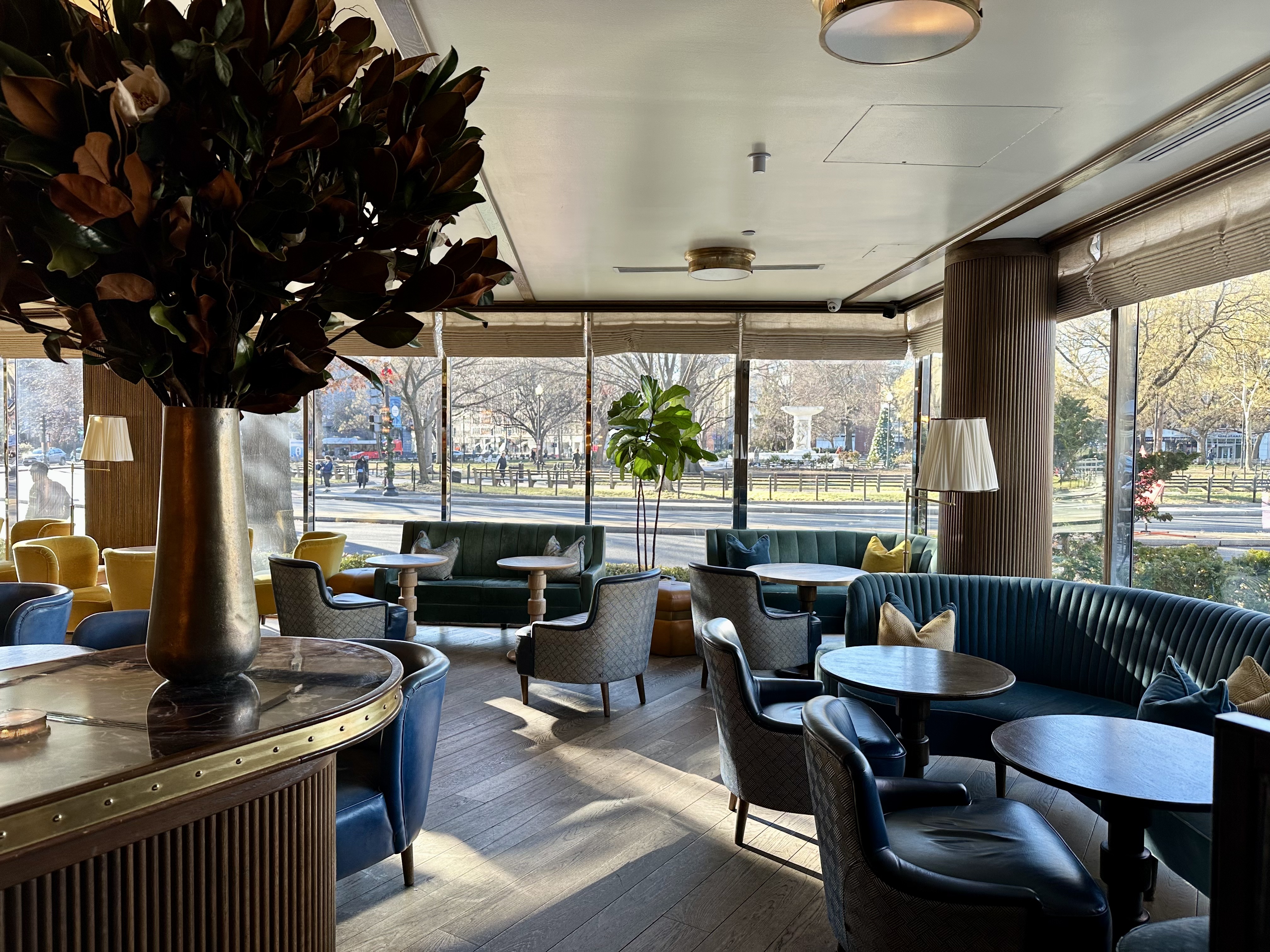 Doyle is reliably buzzing after work and on weekend nights, with a great mix of locals and hotel guests, and the Mad Men-inspired, mid-century space is chic and cozy without feeling precious or stuffy. The fireplace lounge is a standout and works beautifully for semi-private events or intimate gatherings, with views straight out to the Dupont Circle fountain.