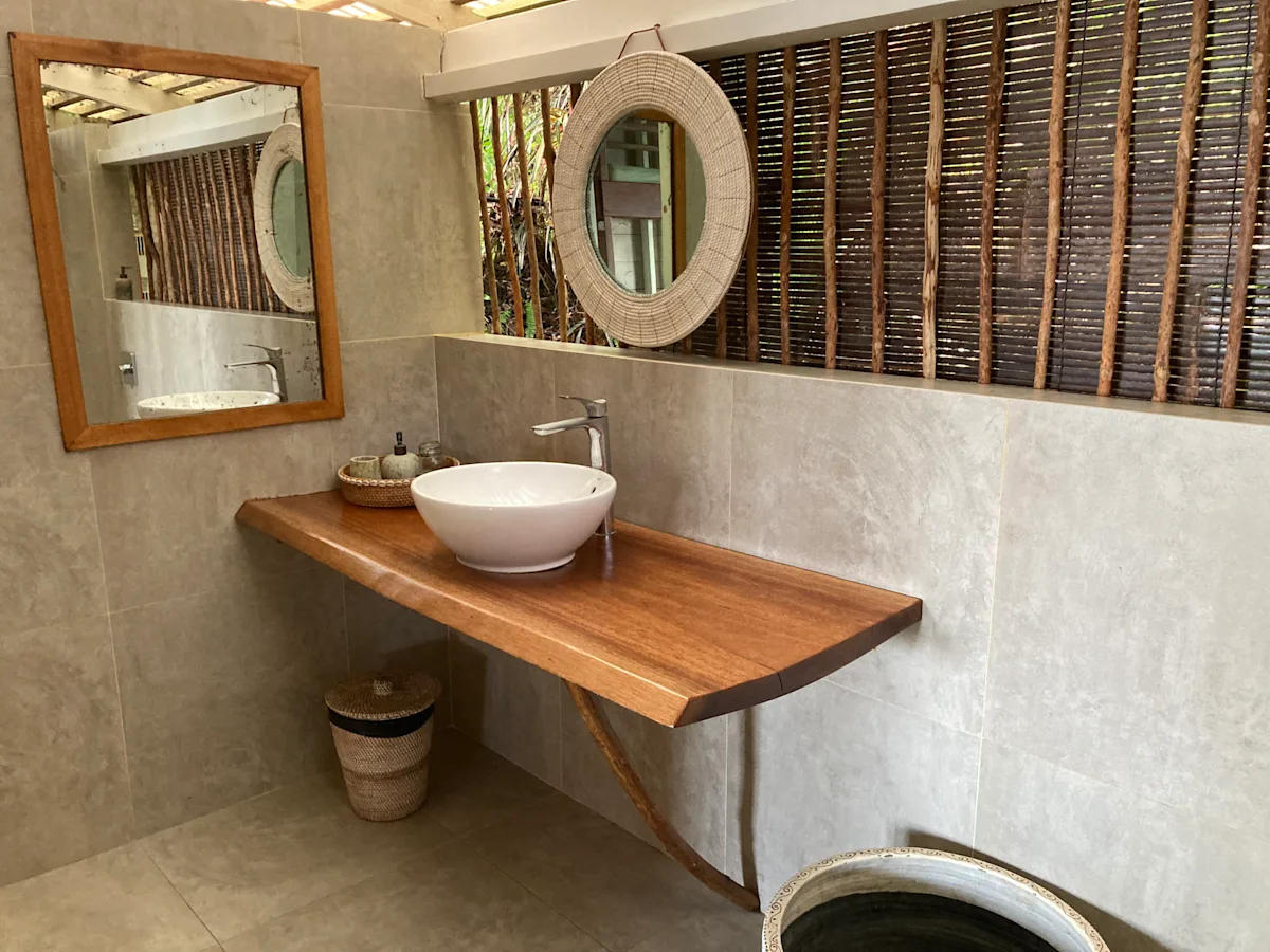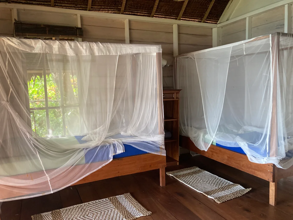 Mentawai Surf Retreat is a small, boutique surf camp hosting a maximum of 12 guests per trip. There are three bungalows with 4–6 beds and a private open-air bathroom. Beds have mosquito nets and fans. Be aware that there is no air conditioning in the bungalows because they are open to nature. Each bungalow has a large desk with hammock and day bed with direct views of the waves and sunset. You are literally steps away from the ocean. The bungalows have outdoor showers and surfboard storage racks, which come in handy since you will be surfing for hours each day. Overall, the accommodations are basic, rustic and comfortable — everything you need to rest and relax between surf sessions.