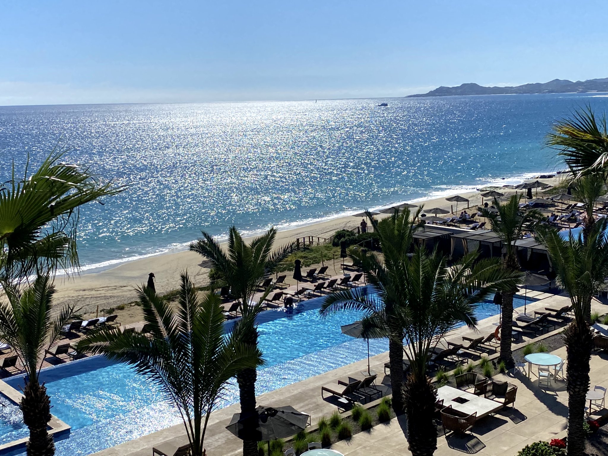 Casa Maat is an approximately 40-room boutique hotel that is part of the JW Marriott. I’ve been there seven times now, and it’s never full. We love to spend each day at the Casa Maat infinity pool, where you can cool off in their pool or relax in the hot tub, all while watching whales dancing in the ocean (should you go during whale season). There is a dedicated staff person to help you select your lounge chair and dress it up in multiple towels to make you feel perfectly comfortable and motivate you to take a dip. There are also multiple staff on hand during the day to bring you drinks.